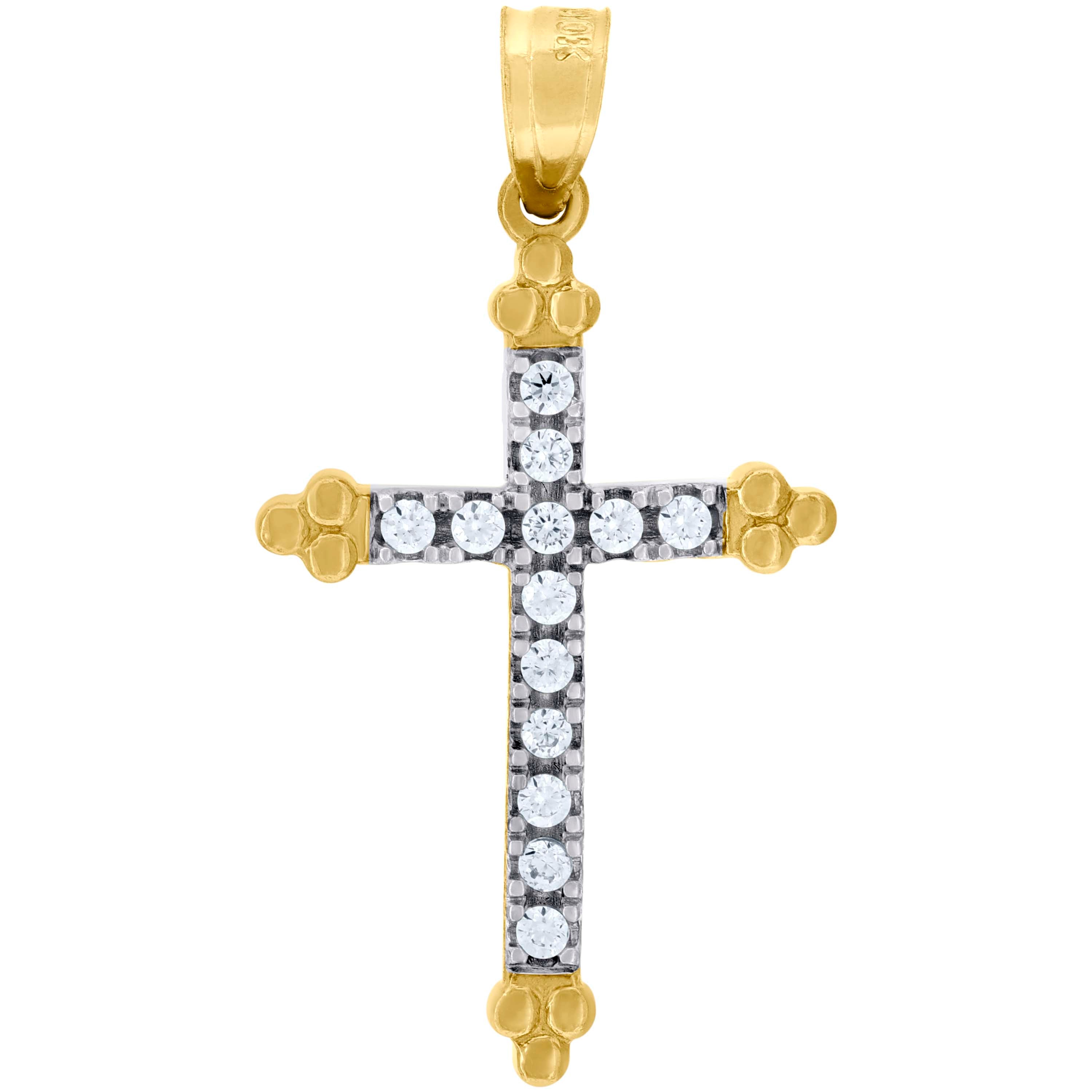 10kt Gold Two-Tone Cubic-Zirconia Womens Cross Religious Charm Pendant