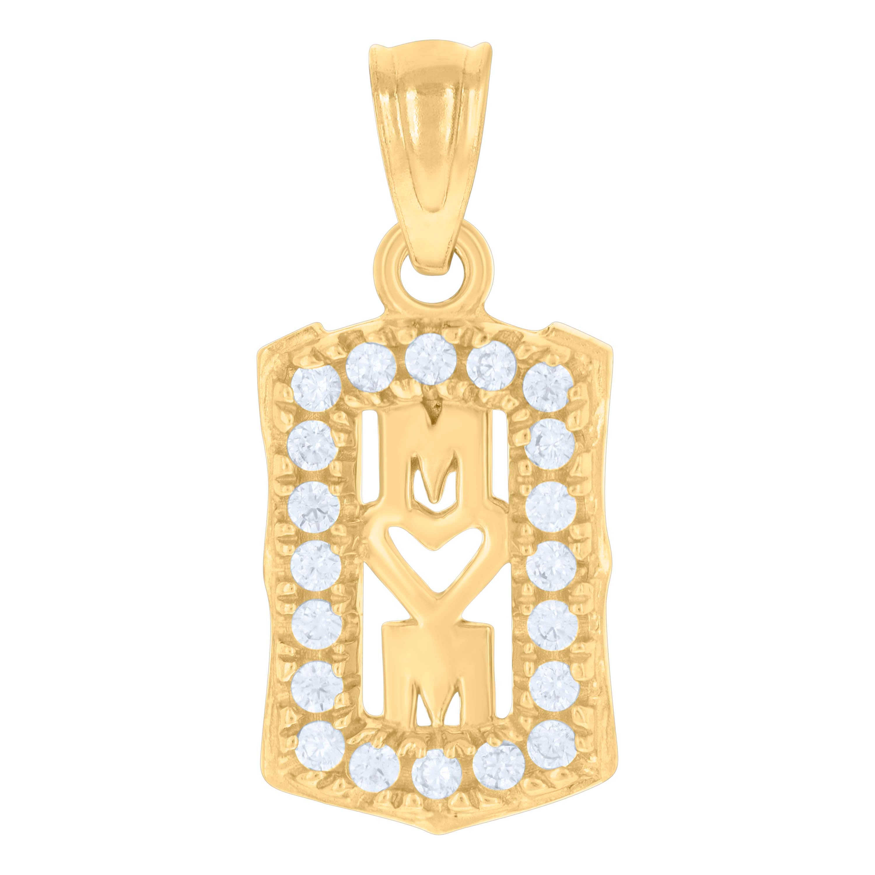 10kt Gold Two-Tone Cubic-Zirconia Womens Mother Mom Charm Pendant
