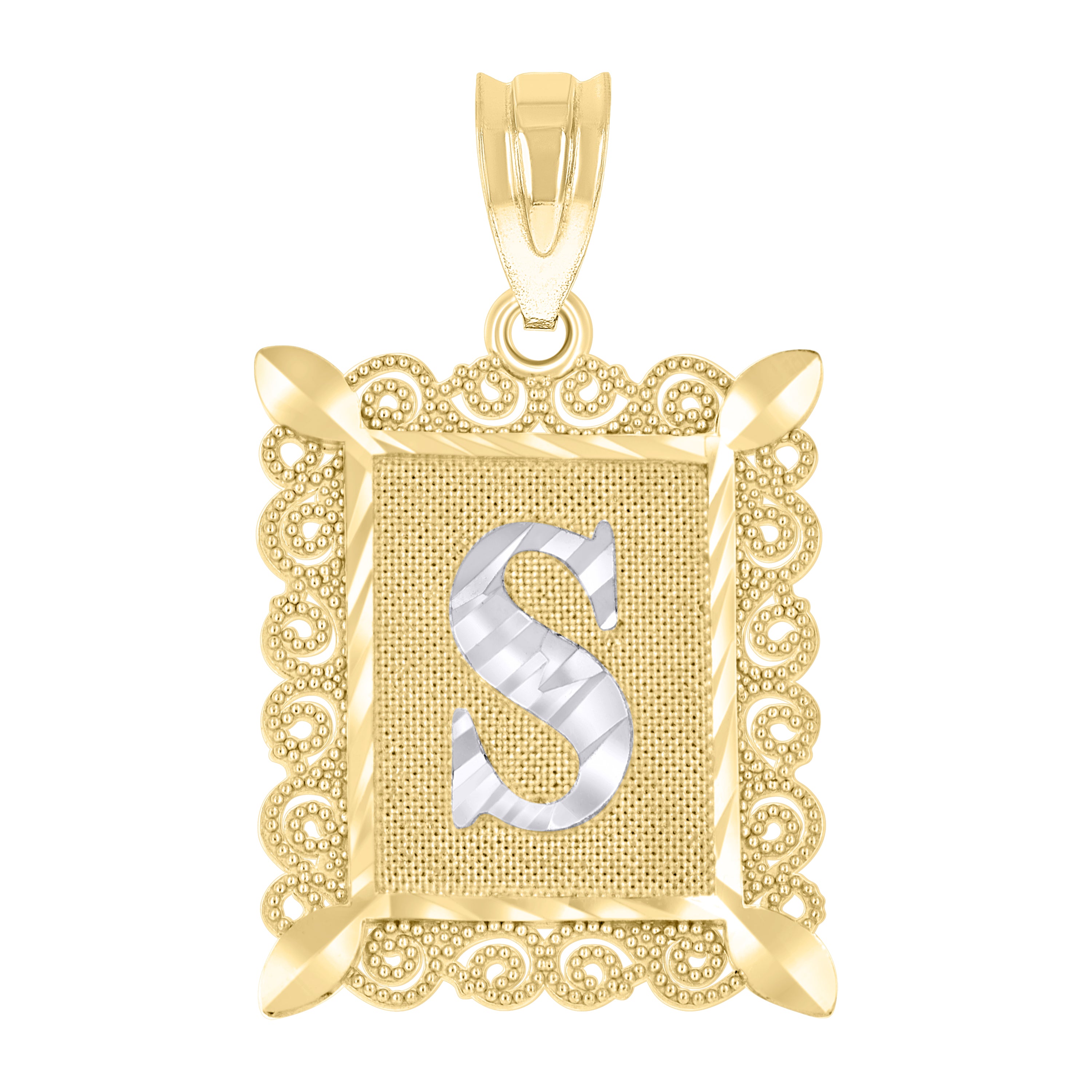 10kt Gold Two-Tone Diamond-Cut Unisex Letter S Initial Charm Pendant