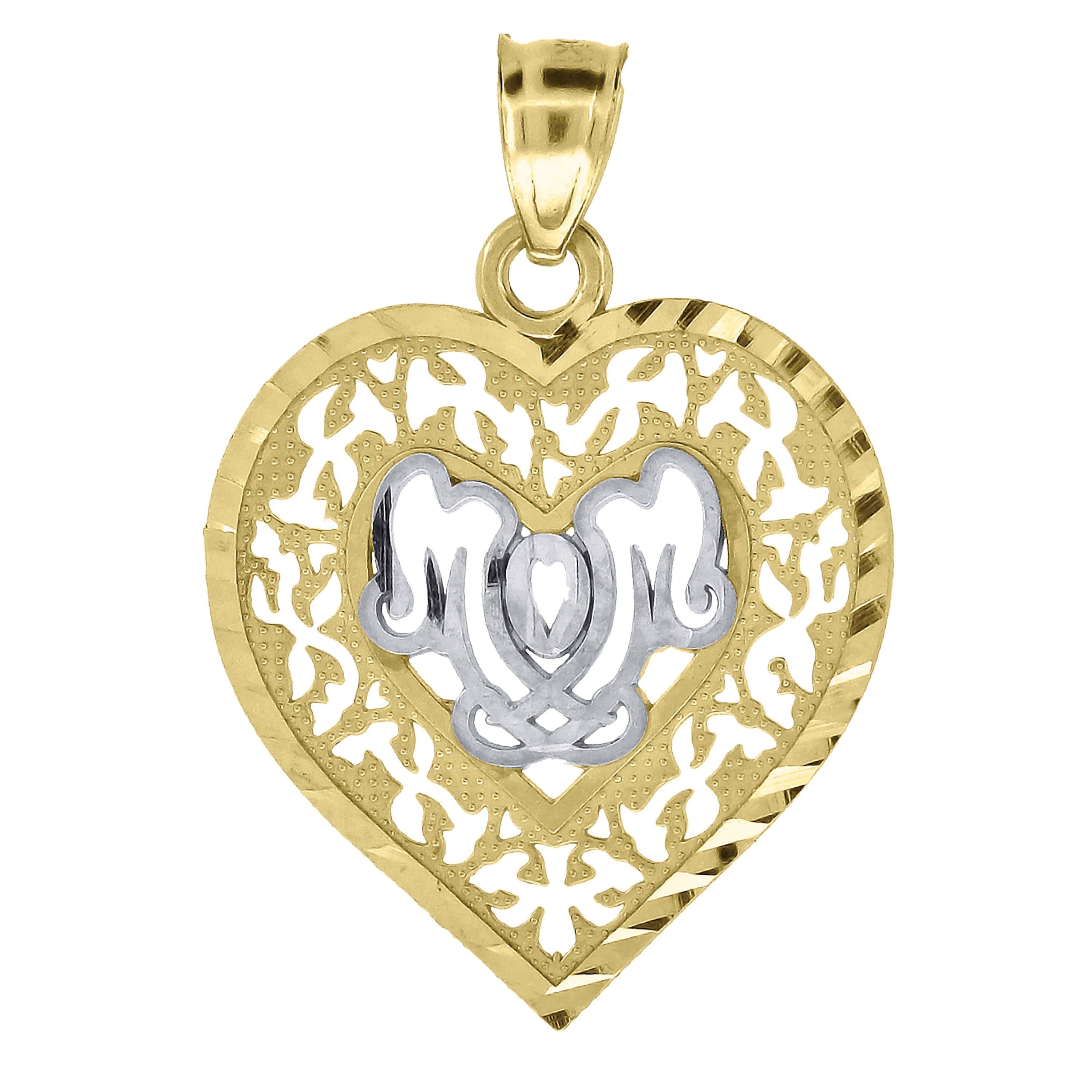 10kt Gold Two-Tone Diamond-Cut Womens Mom Heart Charm Pendant