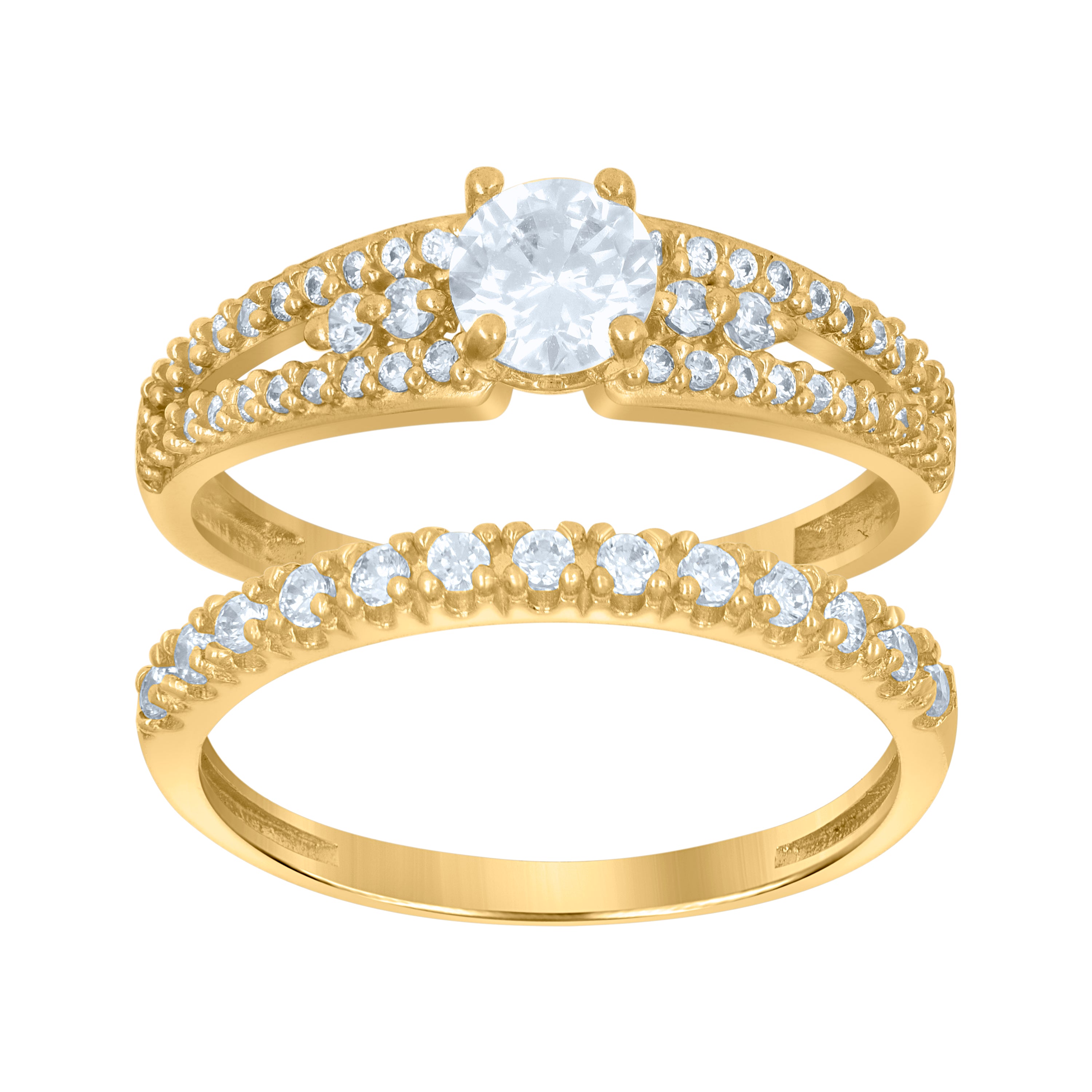 10kt Gold Womens Two-Tone CZ Split Shank Heart Band Ring