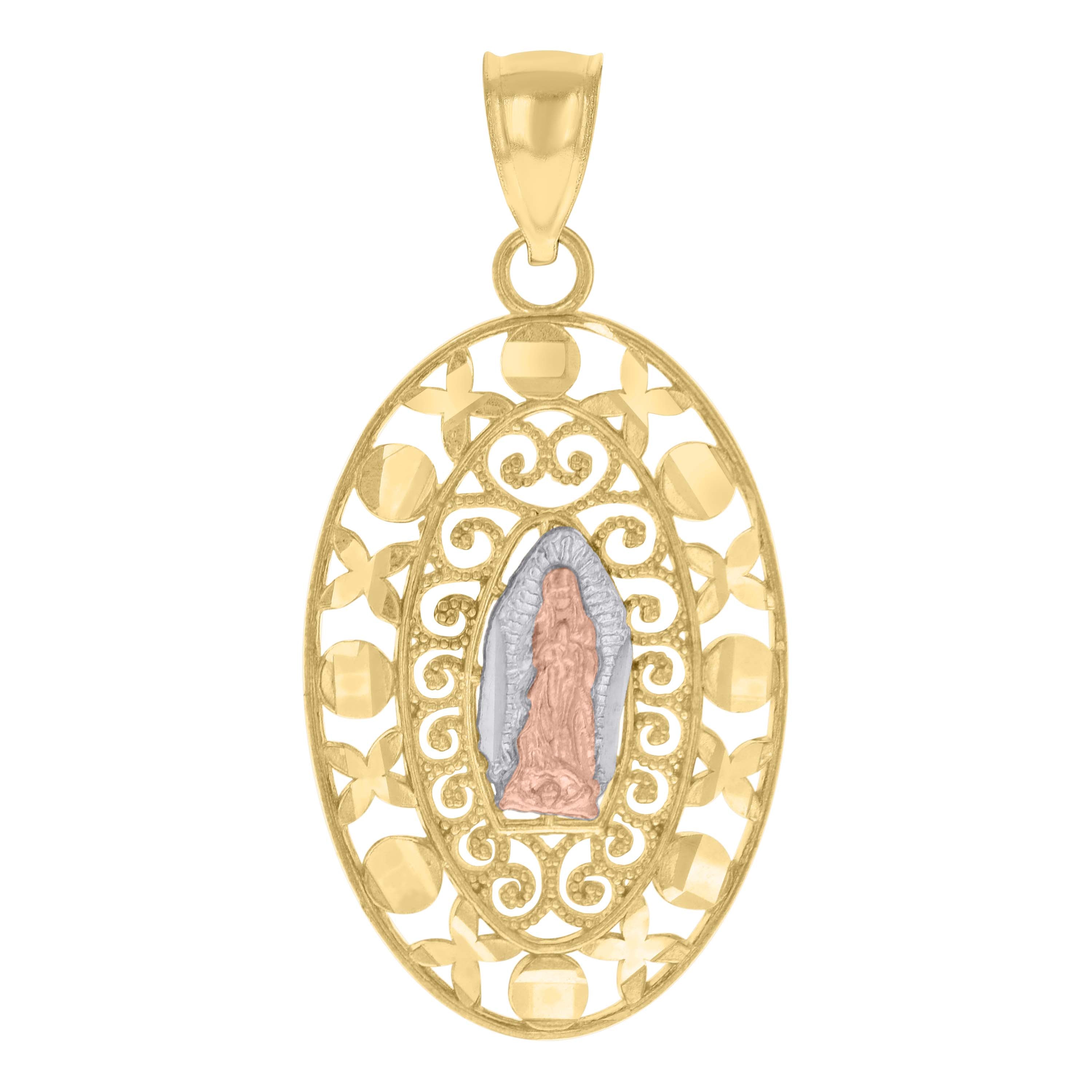 10kt Tri-Color Gold Mens Guadalupe Religious Charm Pendant
