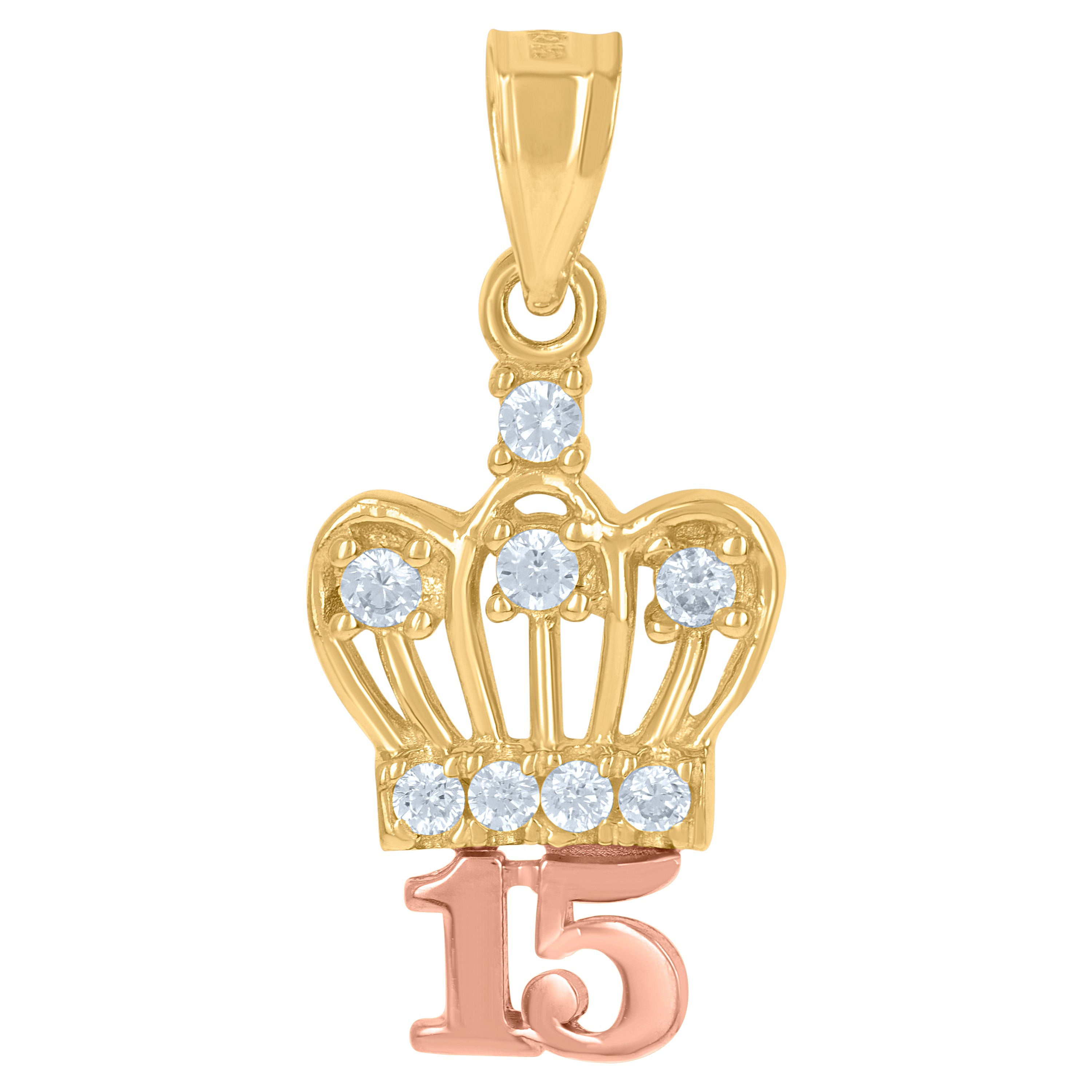 10kt Tri-Color Gold Womens Cubic Zirconia Cubic-Zirconia Sweet 15 Anos Quinceanera Charm Pendant