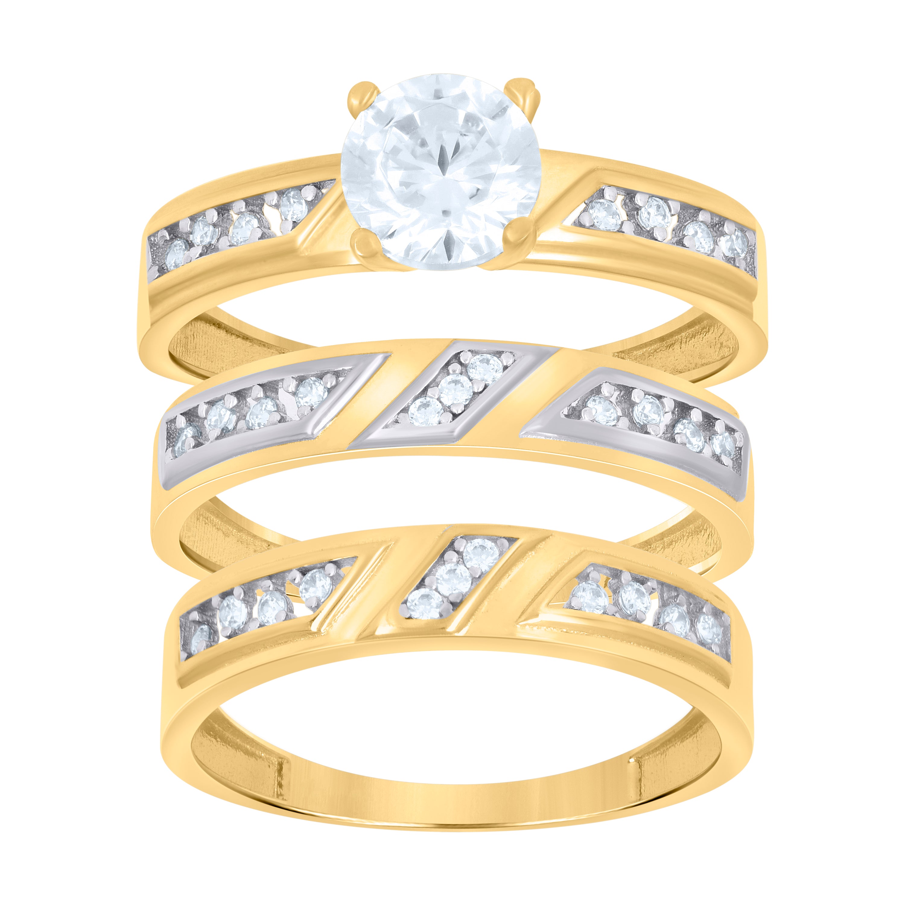 10kt Tri-Color Gold Womens Cubic-Zirconia Trio Ring Set