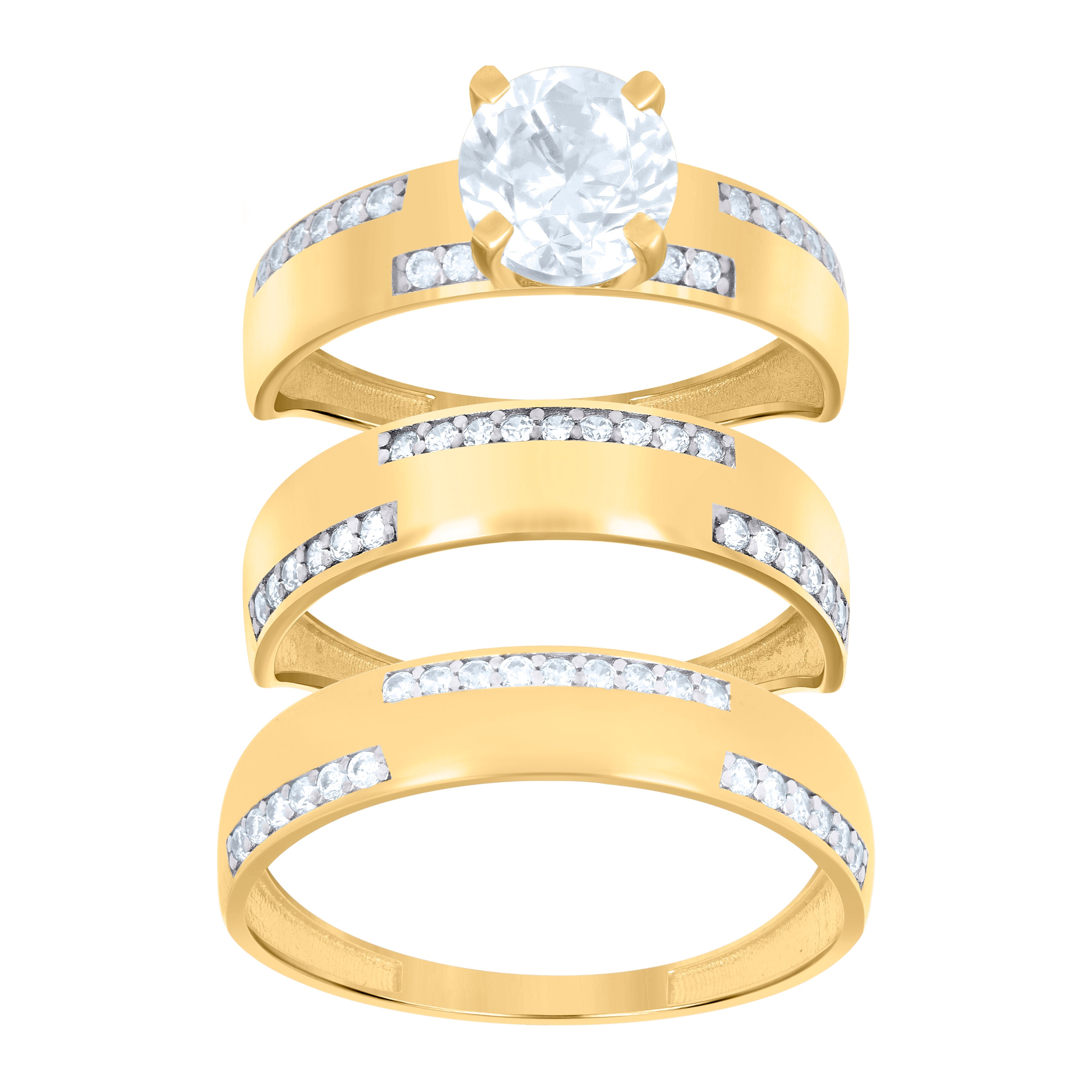 10kt Two-tone Gold His & Hers Cubic-Zirconia Greek Key Trio Ring Set