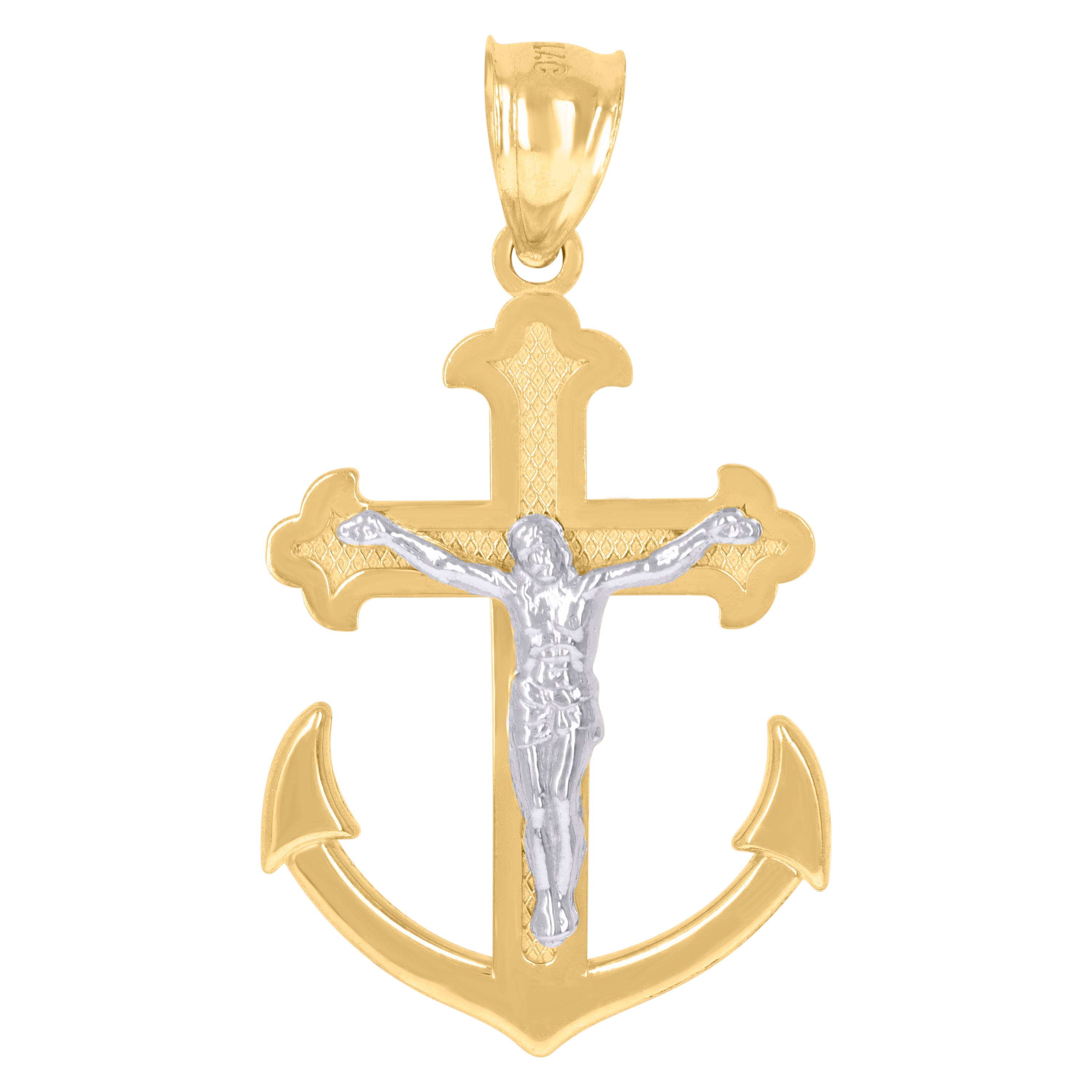 10kt Two-Tone Gold Mens Crucifix Anchor Religious Charm Pendant