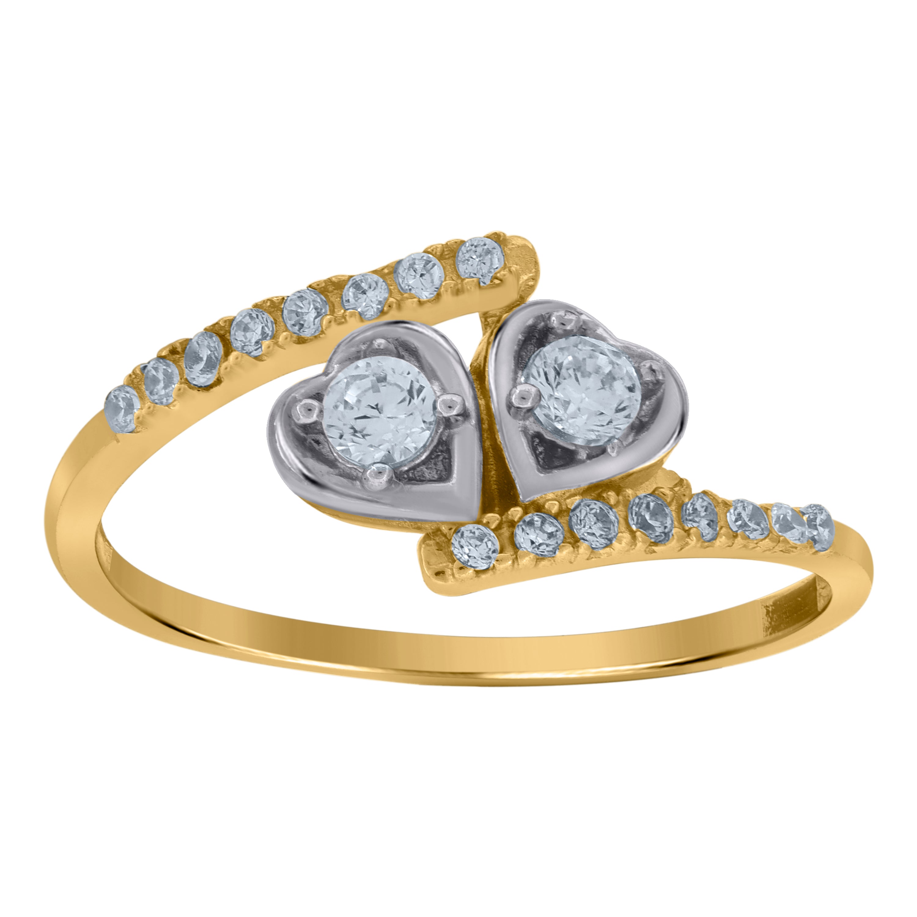Adorn your fingers with this exquisite 10kt Gold Women's Two-Tone CZ Double Heart Band Ring. Weighing just 1.5 grams, this polished beauty features a sleek split shank design. Delicately crafted with an 8MM height and 1MM width, this ring is a testament to elegance. The prong-set, round white Cubic Zirconia stones add a touch of sparkle, making it a perfect choice for any occasion.