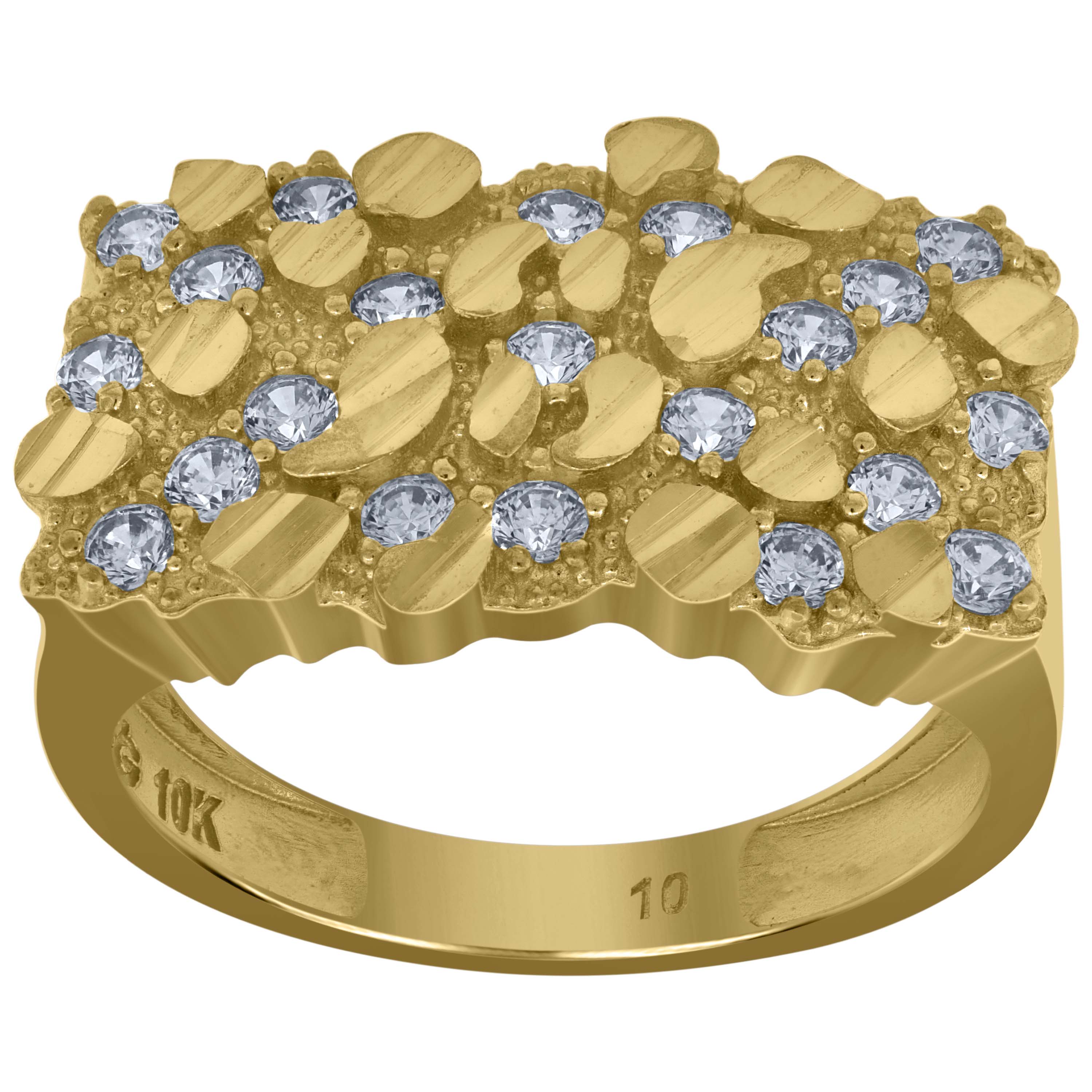 10kt Two-tone Gold Mens Cubic-Zirconia St. Jes˙s Malverde Religious Square Head Nugget Ring