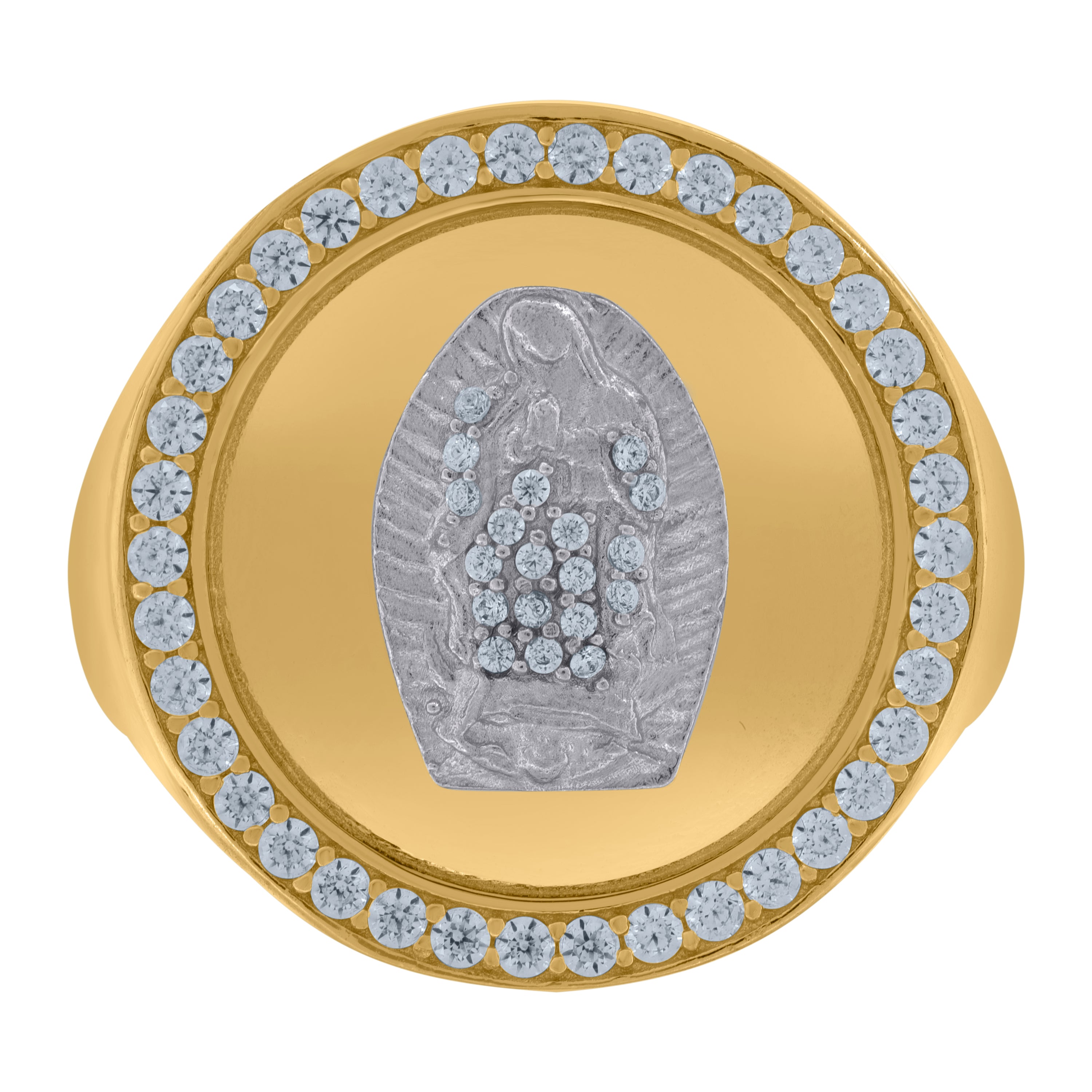 10kt Two-Tone Gold Mens Diamond-Cut Textured Initial Letter C Band Ring