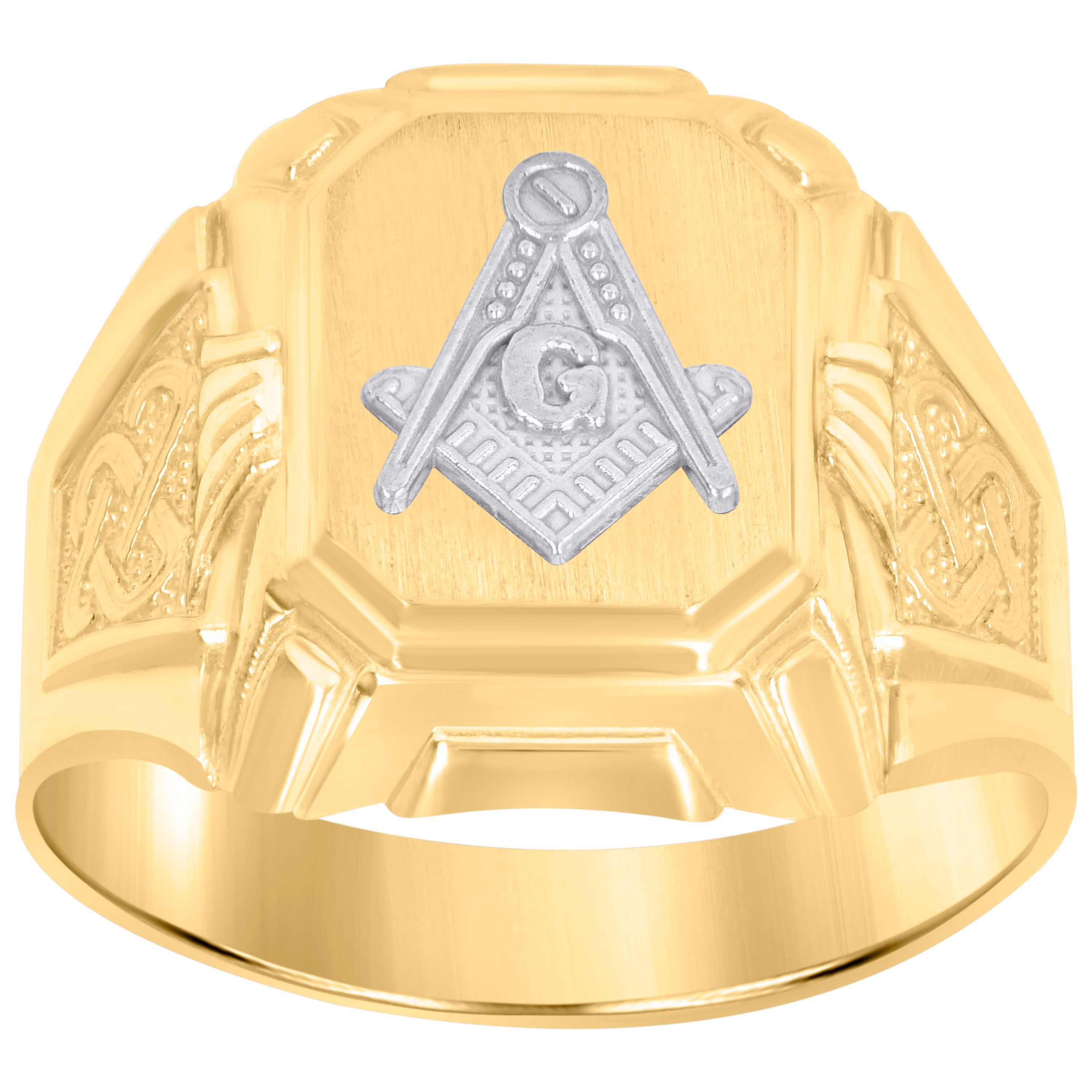 10kt Two-Tone Gold Mens Diamond-Cut Textured Initial Letter L Band Ring