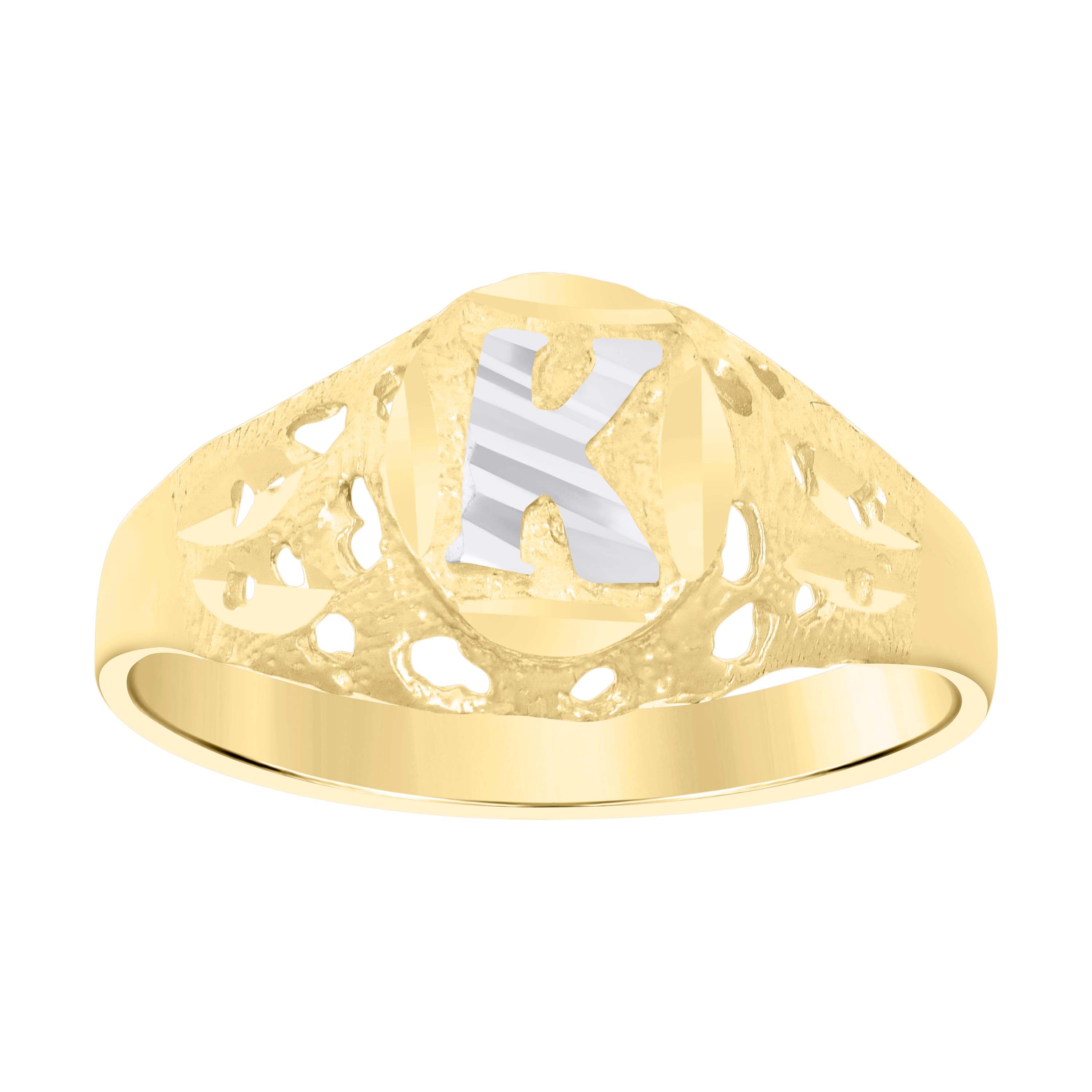 10kt Two-Tone Gold Mens Diamond-Cut Textured Oval Initial Letter K Band Ring