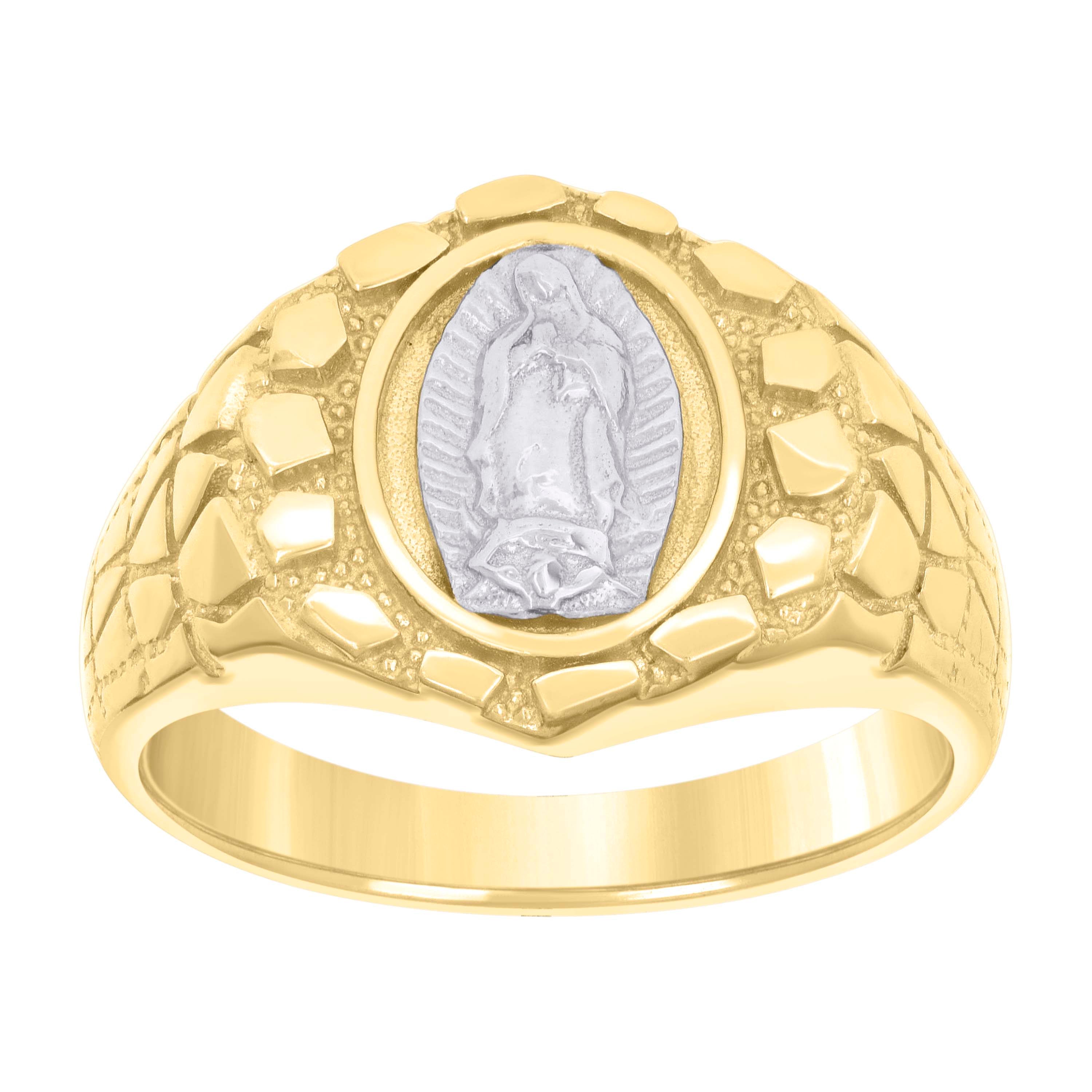 10kt Two-tone Gold Mens Guadalupe Religious Nugget Ring