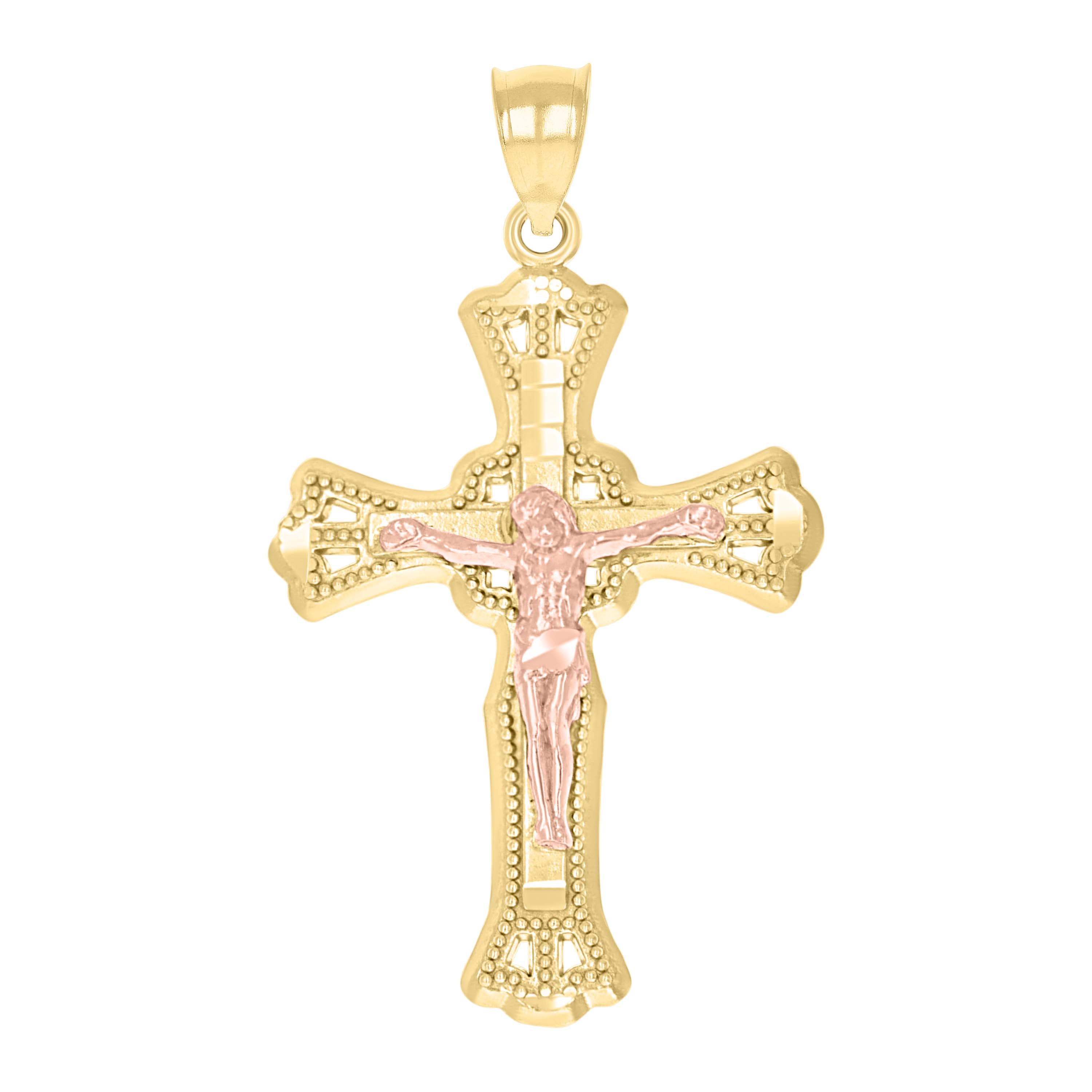 10kt Two-Tone Gold Mens Textured Crucifix Cross Religious Charm Pendant