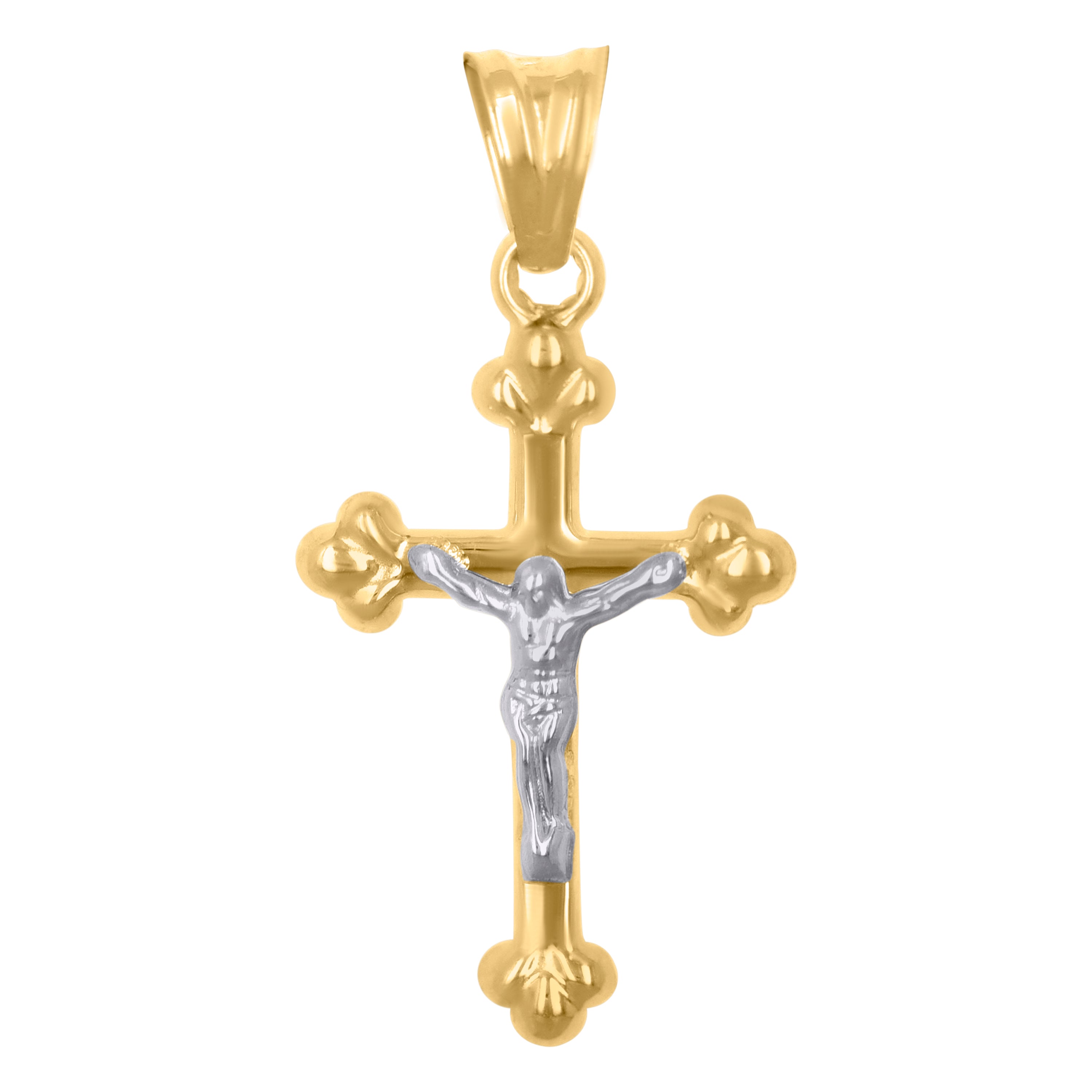 Introducing the exquisite 10Kt Gold Turkish Pendant, a timeless piece crafted in 10kt real two-tone gold. This unisex crucifix cross charm is a perfect blend of elegance and spirituality, designed for those who appreciate both style and meaning. Weighing a delicate 0.9 grams, the pendant showcases a harmonious mix of yellow and white gold, creating a striking visual appeal.
