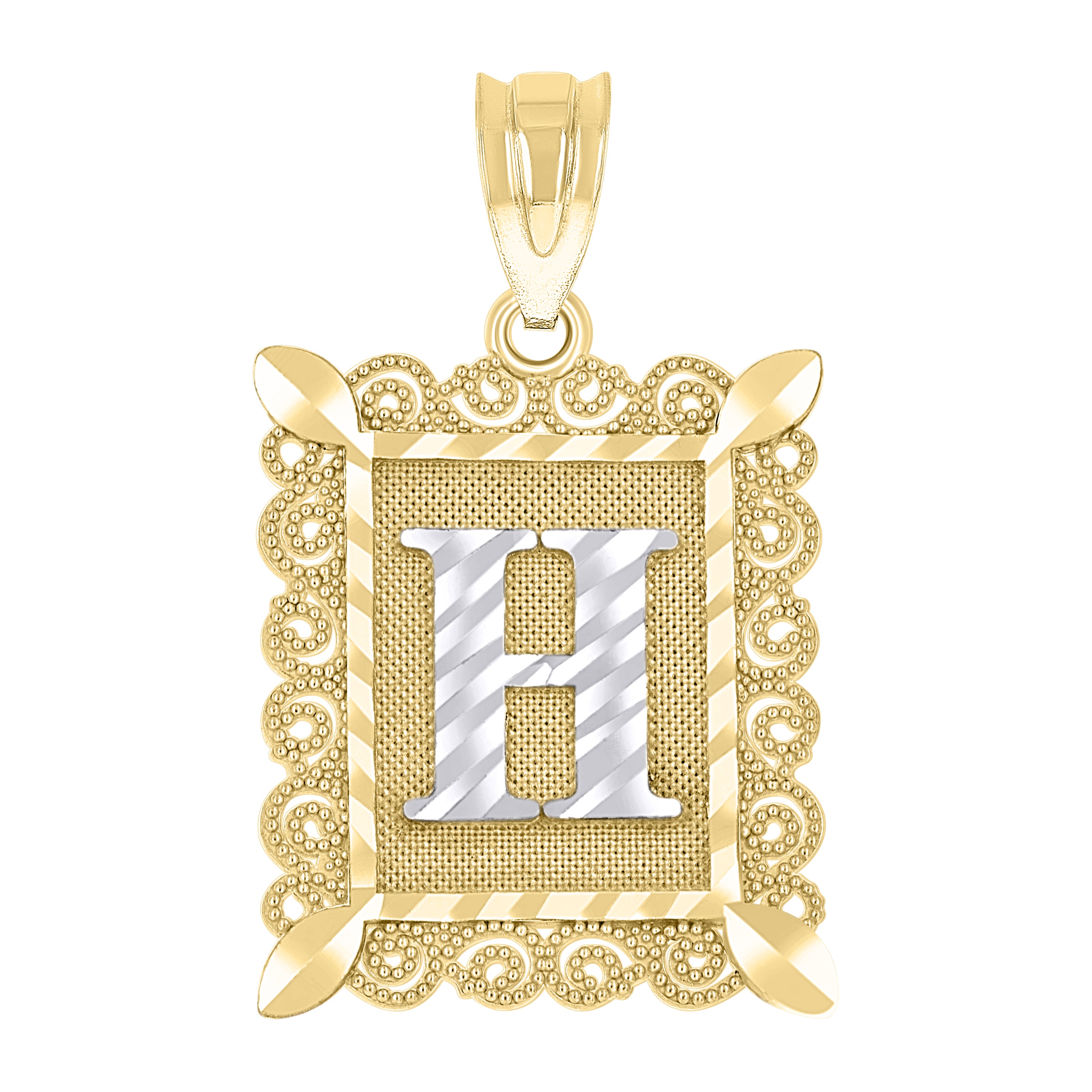 10kt Two-Tone Gold Unisex Diamond-Cut Initial H Charm Pendant