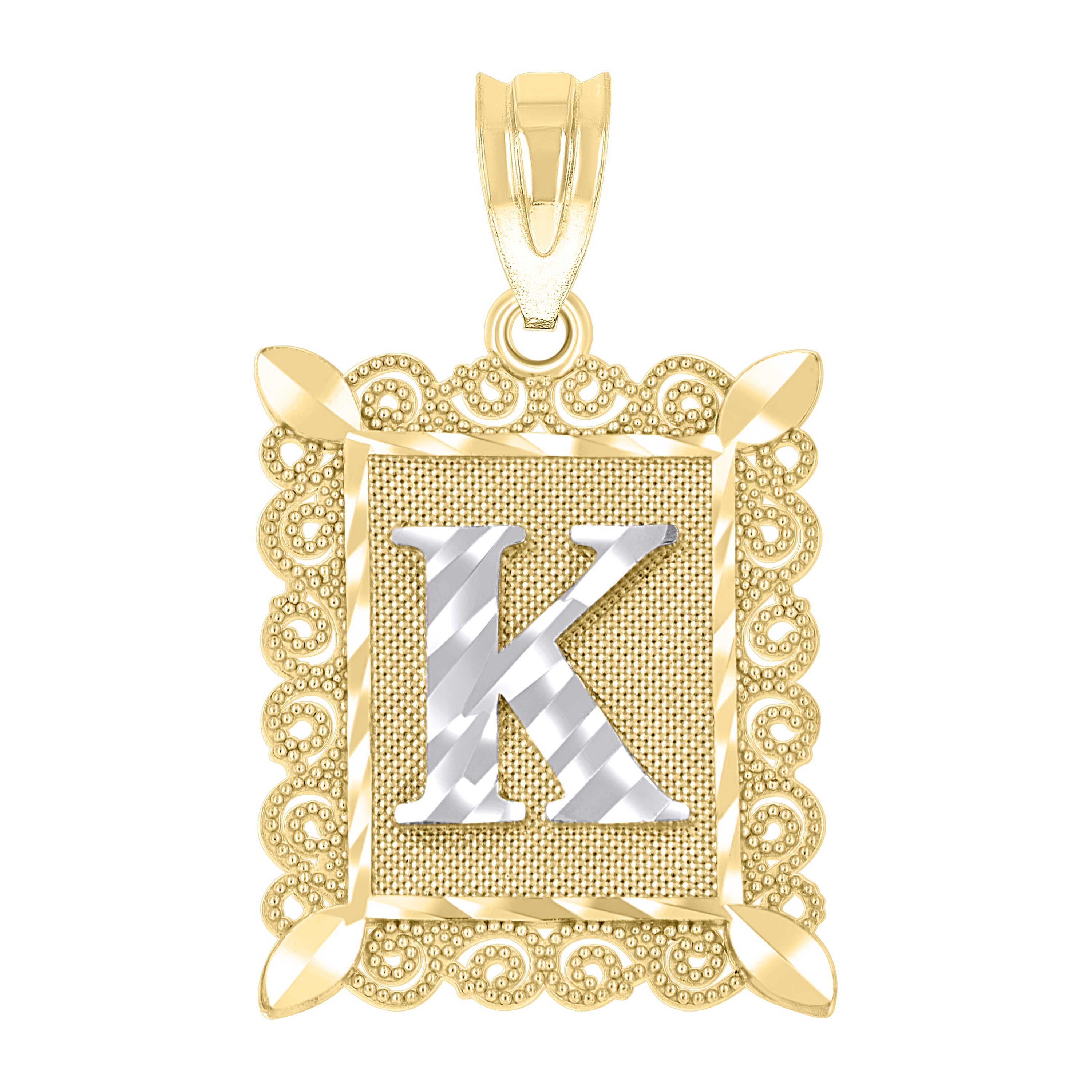 10kt Two-Tone Gold Unisex Diamond-Cut Initial K Charm Pendant