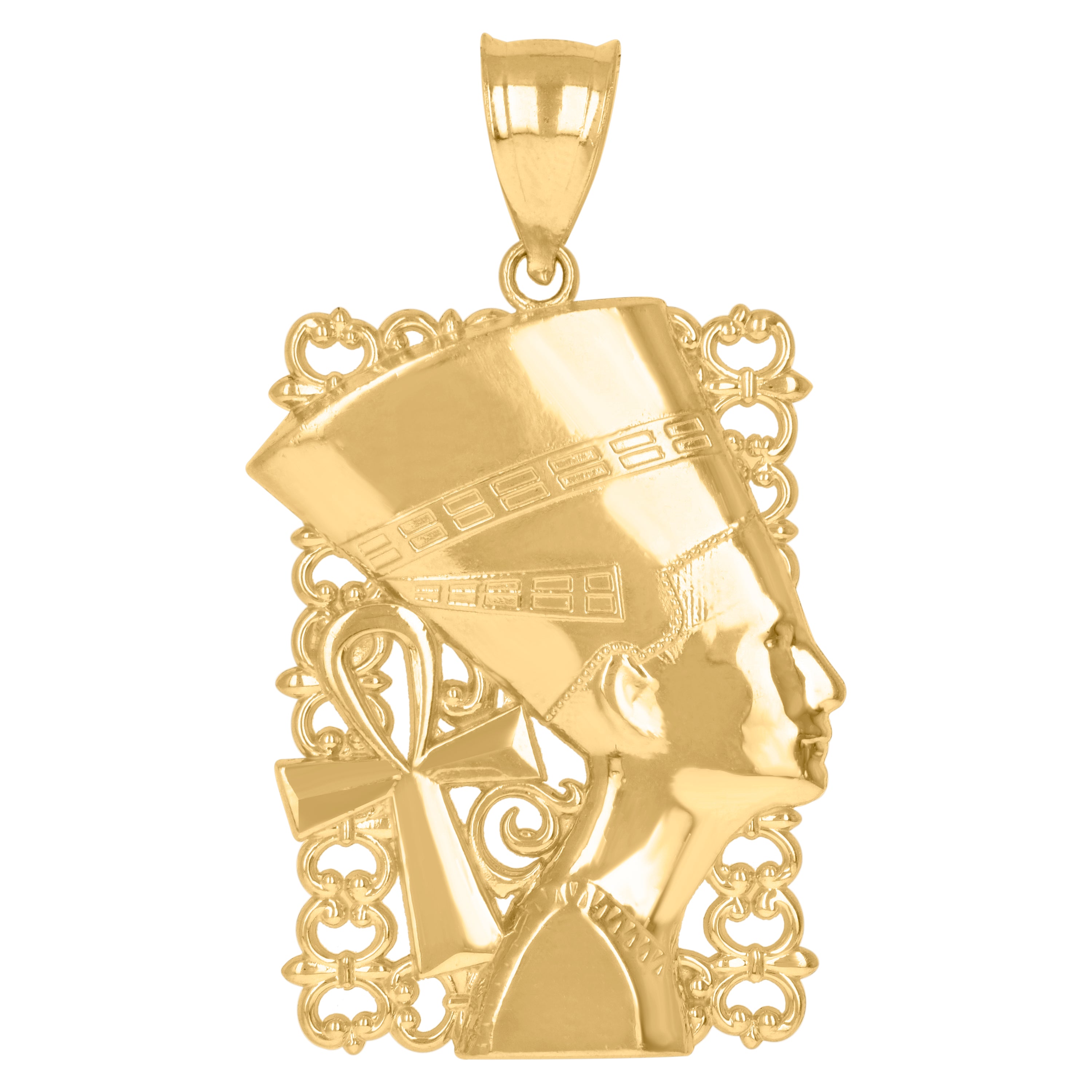 Embrace timeless elegance with our 10kt Yellow Gold Men's Egyptian Nefertiti Ankh Charm Pendant. Weighing 4.6 grams, this polished masterpiece captures the allure of ancient royalty. With a striking height of 47.2mm and a width of 27.6mm, it offers a bold statement piece for sophisticated style. The single bail closure ensures secure and easy wear. An exquisite choice for those who appreciate the beauty and history of Egyptian culture, this charm pendant is a testament to refined craftsmanship and enduring allure.
