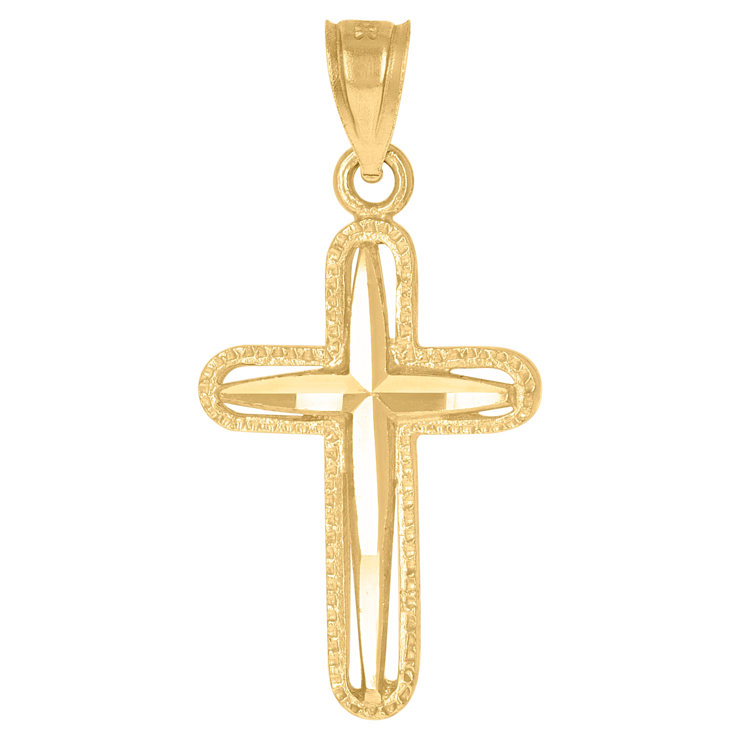 Elevate your style with our exquisite 10Kt Gold Pendant, a timeless piece that embodies elegance and spirituality. Crafted from real 10kt yellow gold, this unisex cross charm pendant is perfect for both men and women seeking a meaningful accessory. Weighing a delicate 1.6 grams, its diamond-cut finish enhances its radiant glow, making it a standout addition to any ensemble.