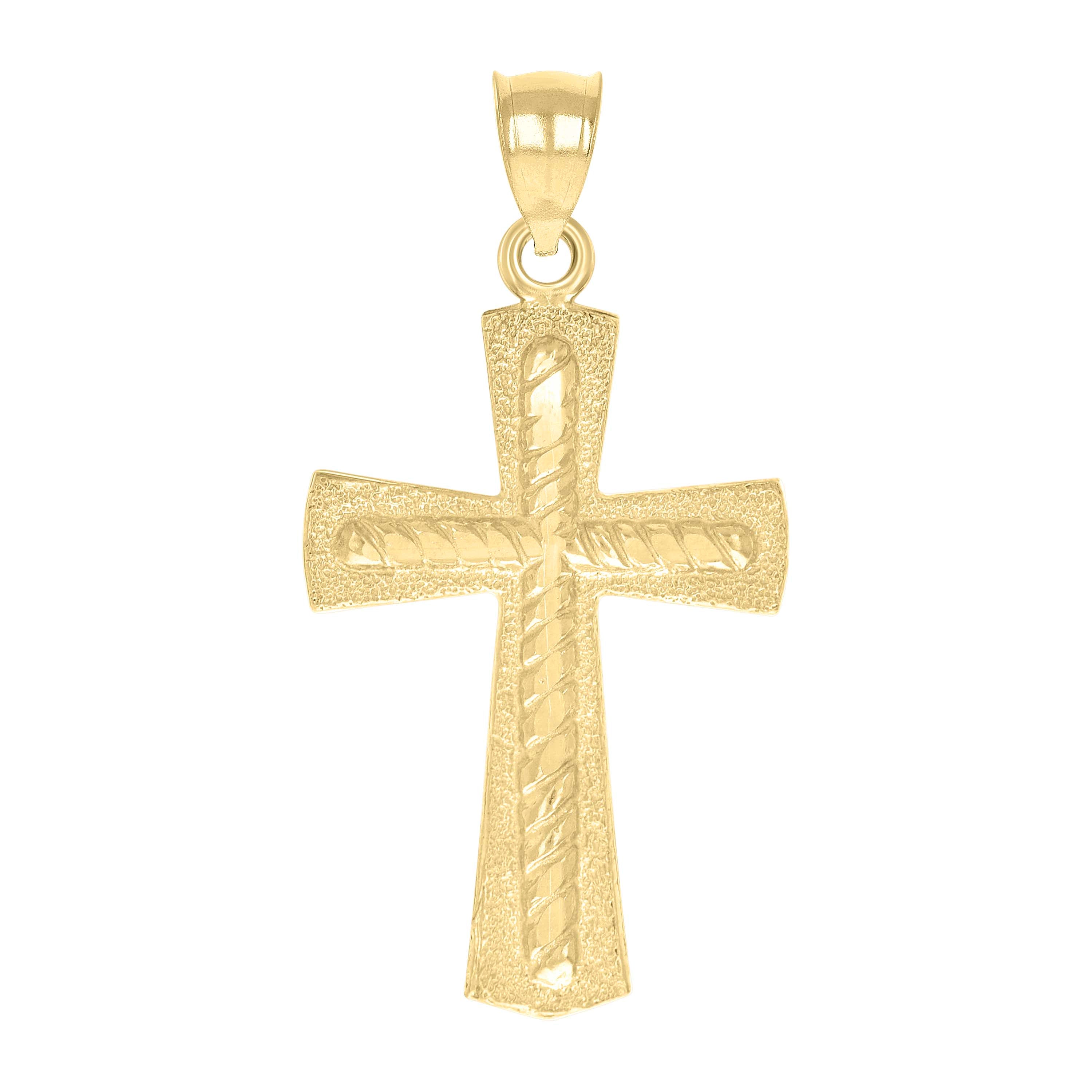 Introducing our exquisite 10Kt Gold Pendant, a timeless piece that embodies both elegance and spirituality. Crafted from pure 10kt real yellow gold, this unisex textured cross charm is a testament to refined craftsmanship. Weighing a delicate 1.6 grams, its luminous yellow hue captures the eye with its brilliant shine.