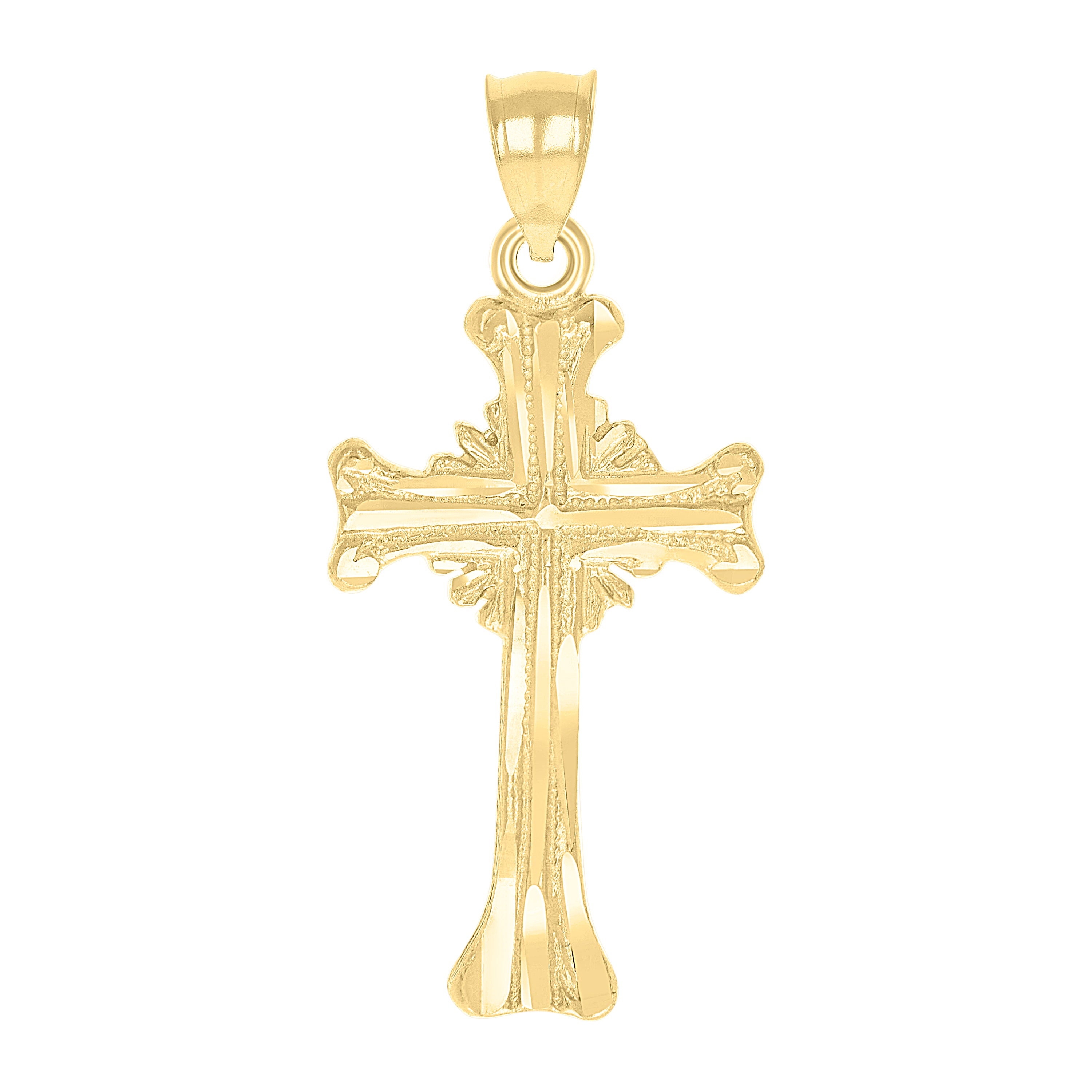 Elevate your style with this exquisite 10Kt Gold Pendant, a timeless symbol of faith and elegance. Crafted from pure 10kt real yellow gold, this unisex pendant showcases a stunning diamond-cut textured cross design, perfect for making a subtle yet striking statement. Weighing just 1.7 grams, it offers a lightweight feel with unmatched sophistication. The pendant measures 33.9MM in height and 15.4MM in width, ensuring an ideal size for daily wear or special occasions. The single bail closure provides ease of wear, while the textured finish adds a unique touch of artistry. A versatile piece for any jewelry collection, this pendant is perfect for anyone seeking a classic, religious charm with a modern twist. Embrace the beauty of simplicity and spirituality with this elegant 10Kt Gold Pendant.