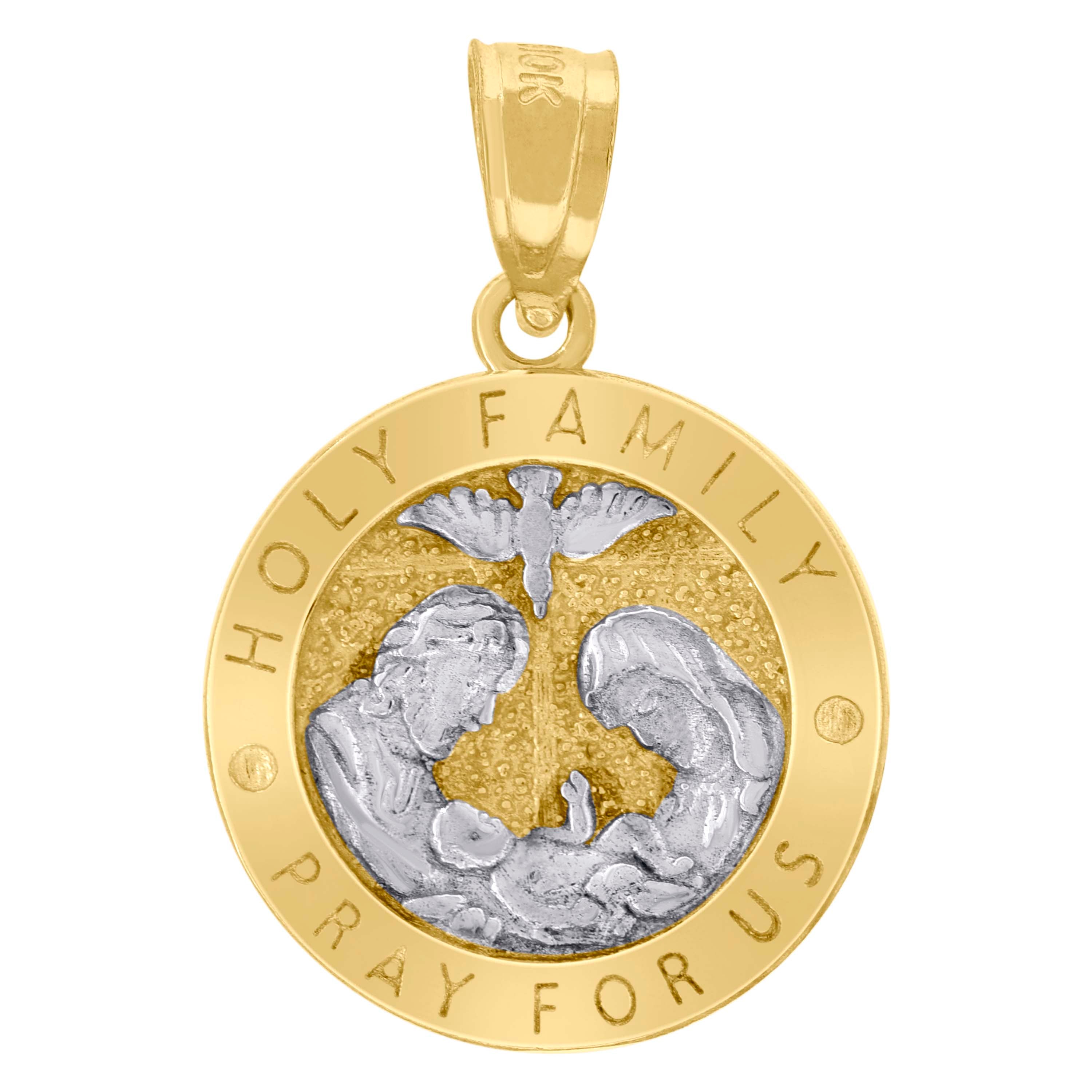 10kt Two-Tone Gold Unisex Textured Holy Family Pray For Us Religious Charm Pendant