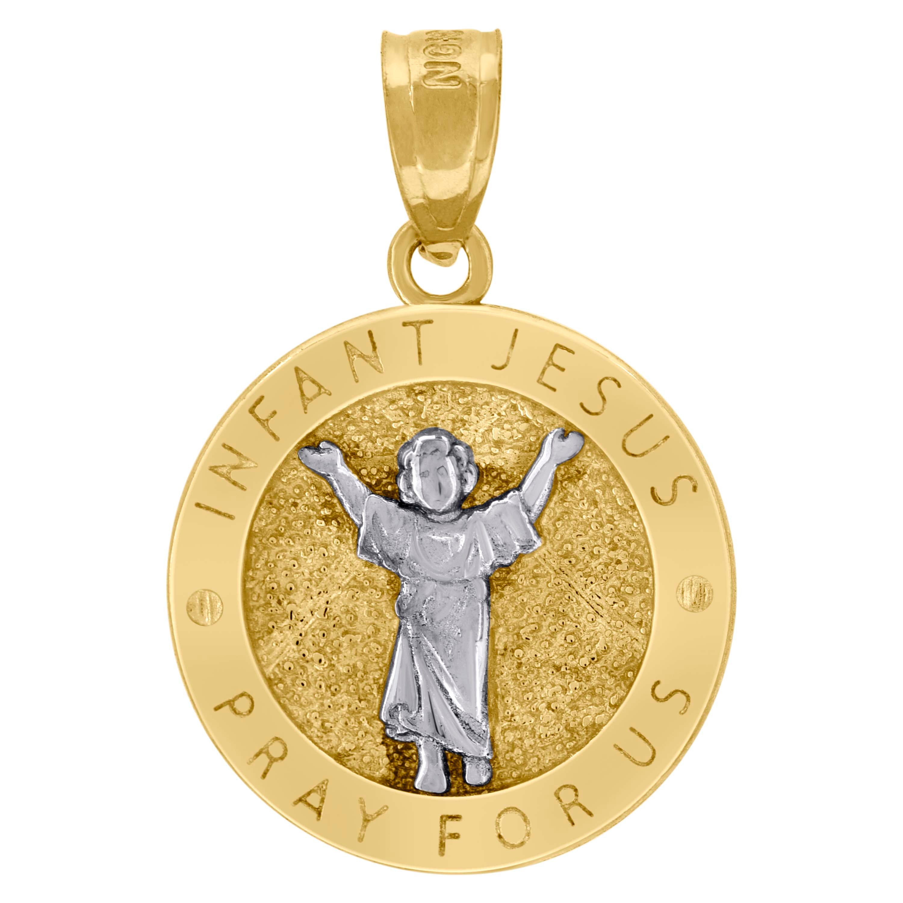 10kt Two-Tone Gold Unisex Textured Infant Jesus Pray For Us Religious Charm Pendant