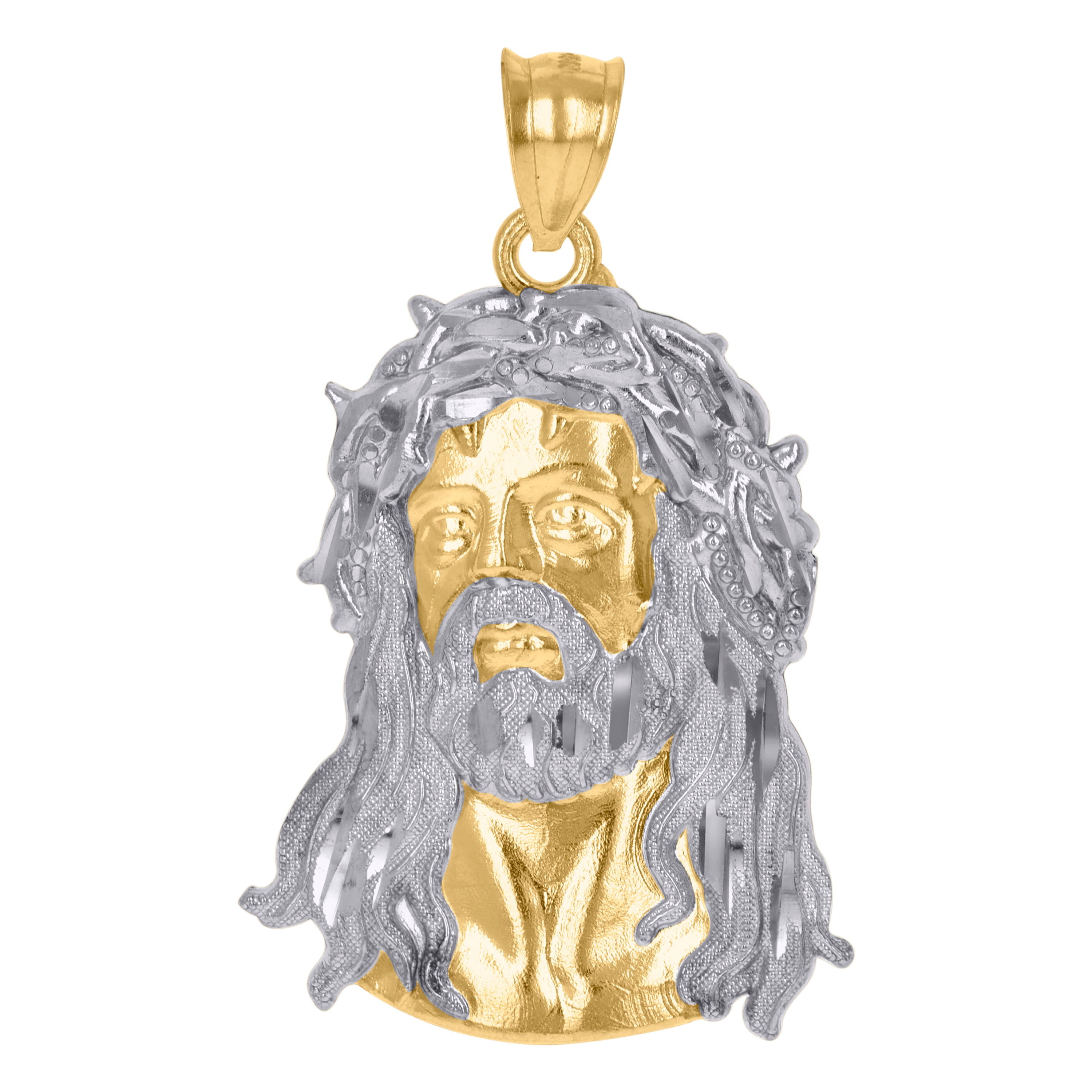 Introducing our exquisite 10Kt Gold Pendant, a masterful blend of faith and craftsmanship. This 10kt Real Gold Two-Tone Textured Men's Jesus Religious Charm Pendant is designed to inspire and impress. With a striking combination of yellow and white gold, this pendant is perfect for the discerning man who values both style and spirituality.