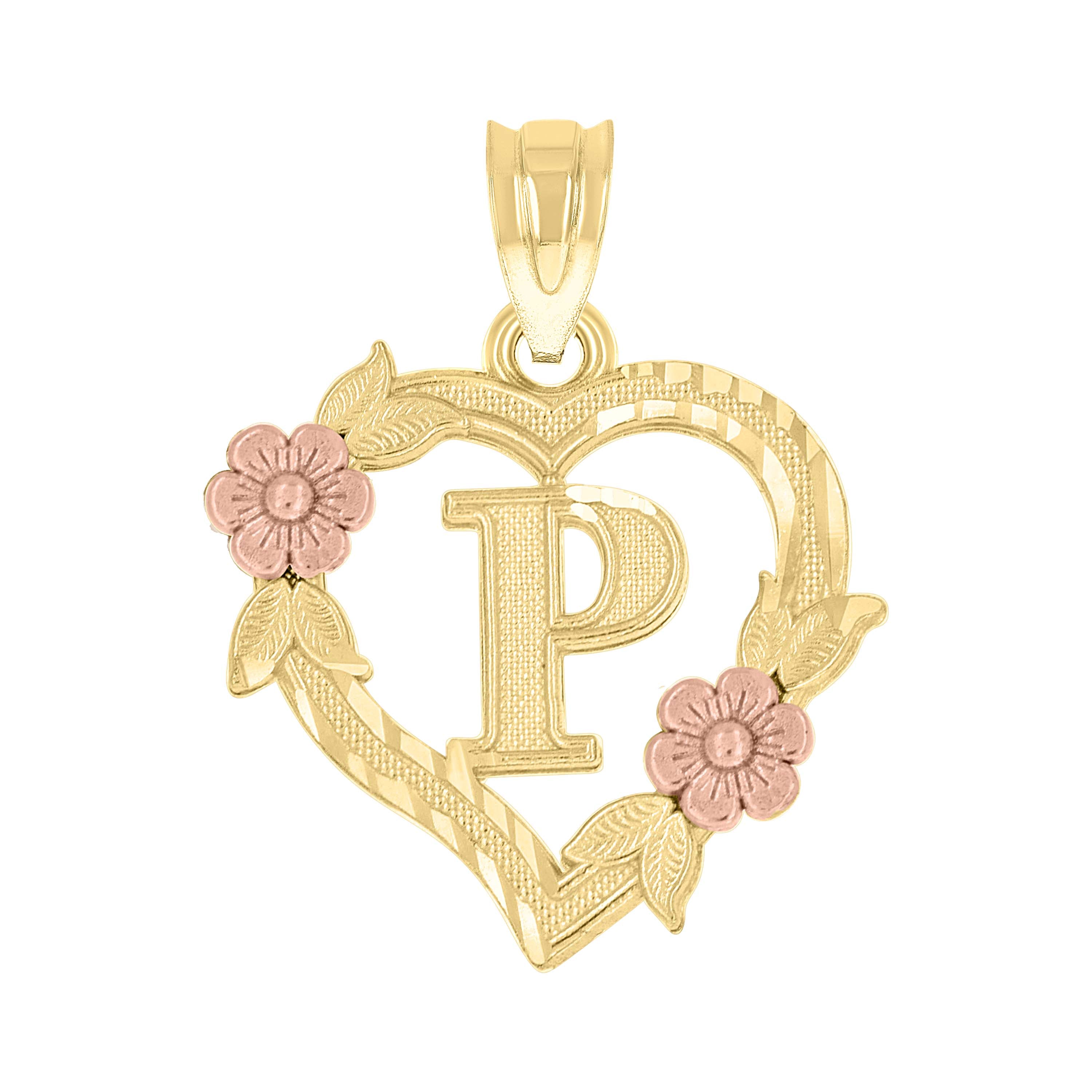 Introducing a timeless piece of elegance, the Authentic 10k Yellow & Rose Gold Women's Initial "P" Letter Pendant by SB Jewelers. This exquisite charm, weighing just 1.1 grams, is a perfect blend of sophistication and style, designed specifically for the modern woman. Crafted with meticulous attention to detail, the pendant showcases the finest 10k metal purity, ensuring both durability and a luxurious shine.