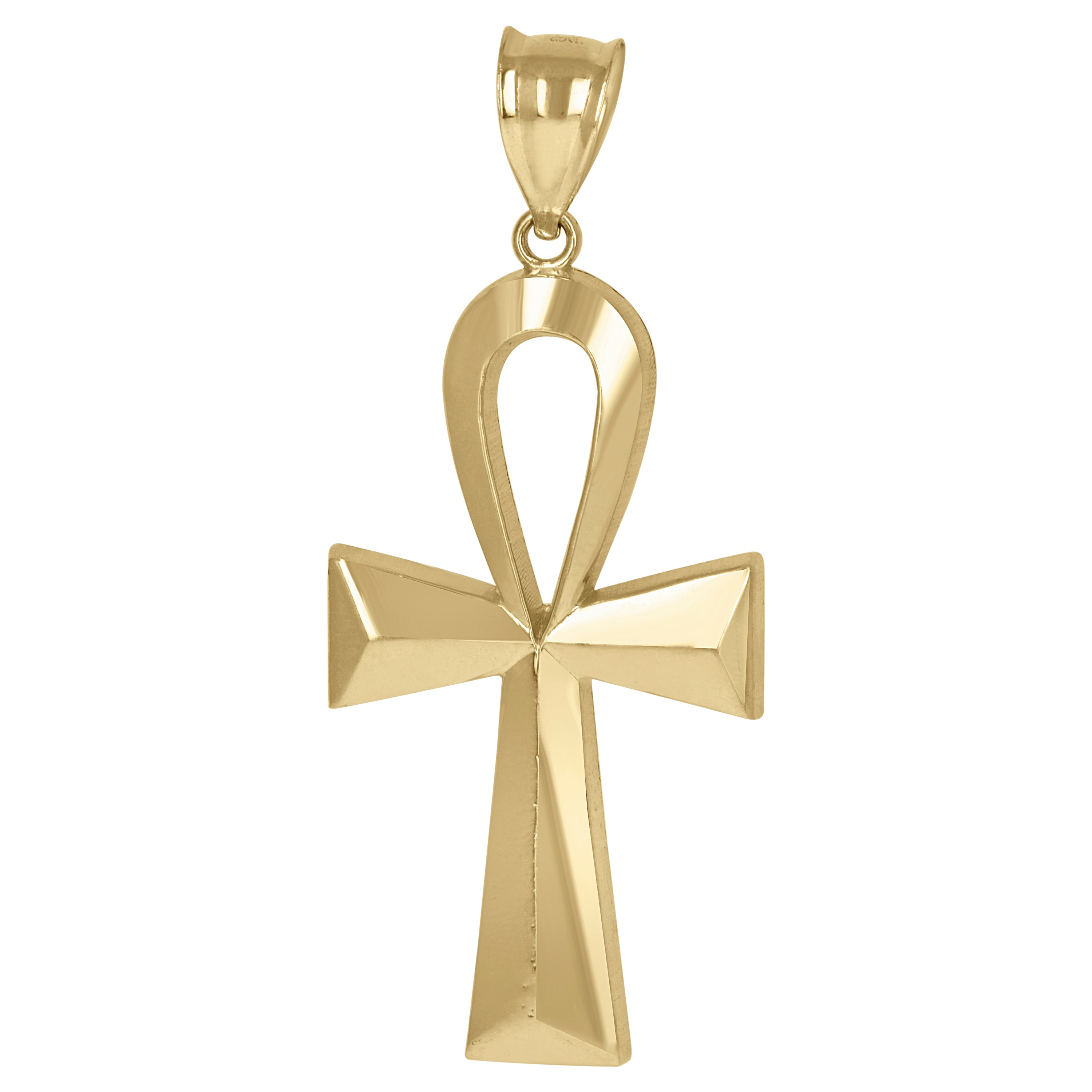 Elevate your style with this exquisite 10kt Yellow Gold Men's Ankh Cross Pendant. A symbol of life and spirituality, this polished Egyptian charm is crafted to perfection. Weighing 5.9 grams, its sleek dimensions of 57MM height and 23.7MM width make it a standout piece. Designed with a single bail closure, this pendant exudes timeless elegance without the distraction of cubic zirconia. Ideal for anyone who cherishes meaningful jewelry with a refined yet bold aesthetic.