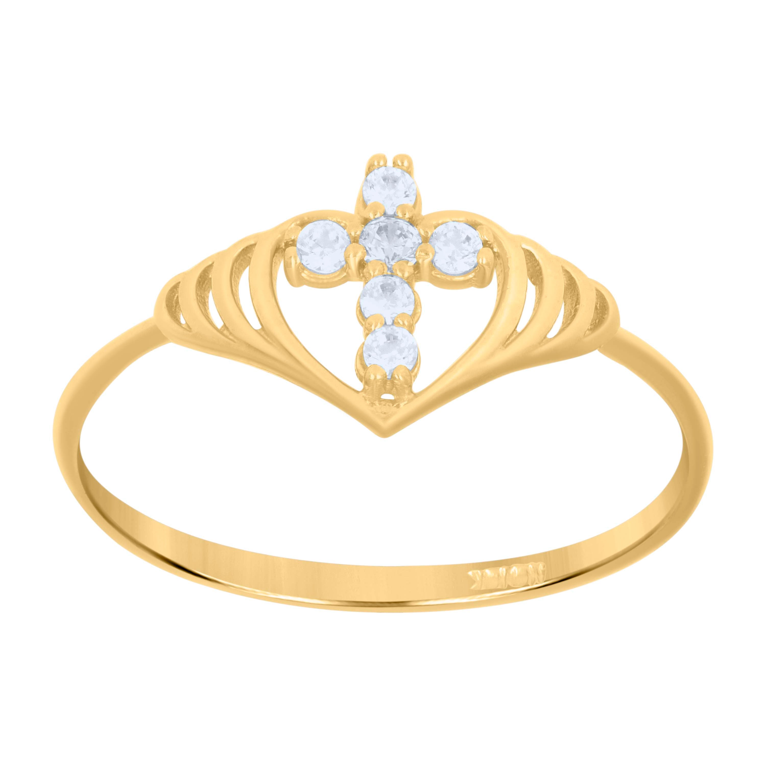 10Kt Yellow Gold Cz Womens Polished Finish Heart Cross Religious Ring