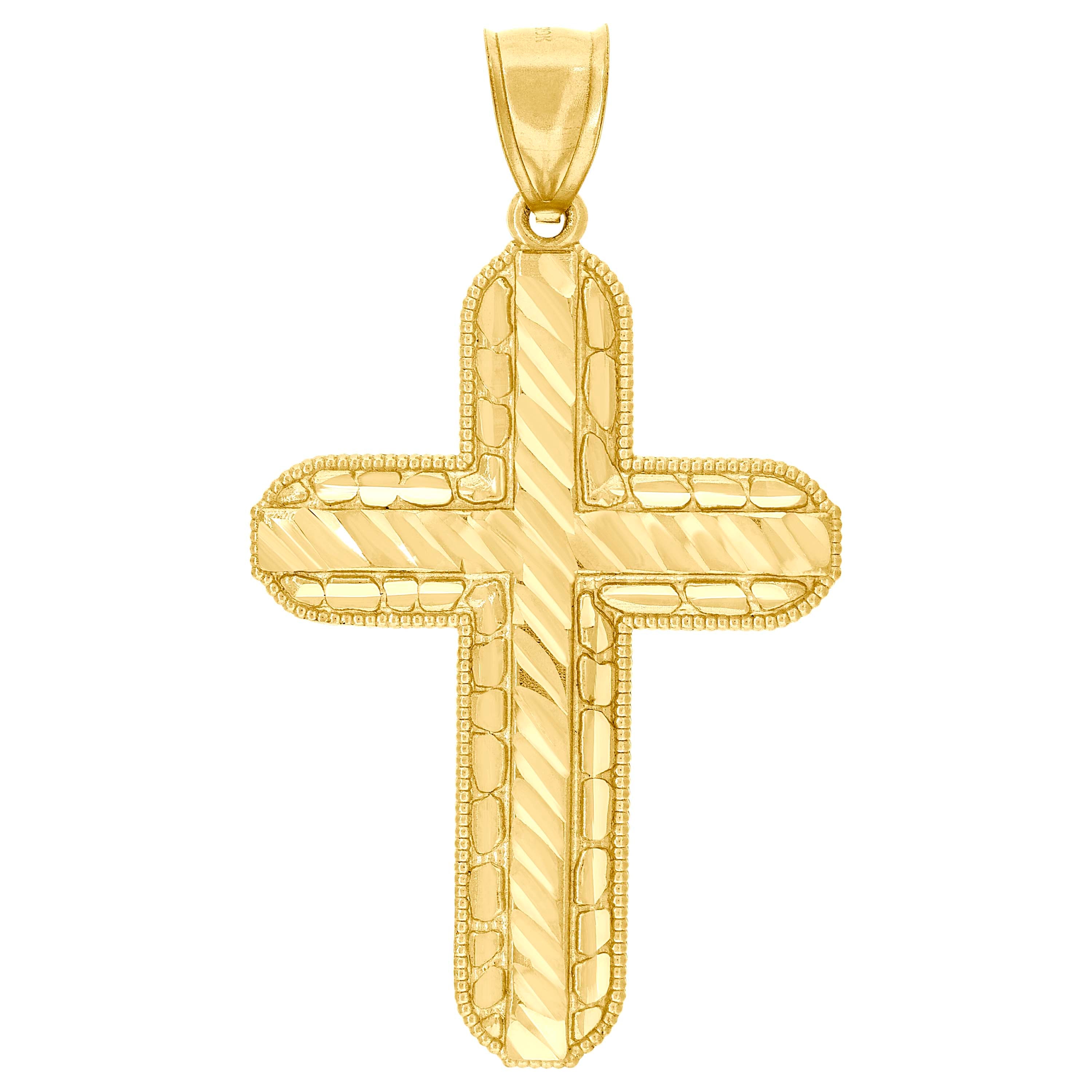 10kt Yellow Gold Diamond-Cut Mens Nugget Cross Religious Charm Pendant