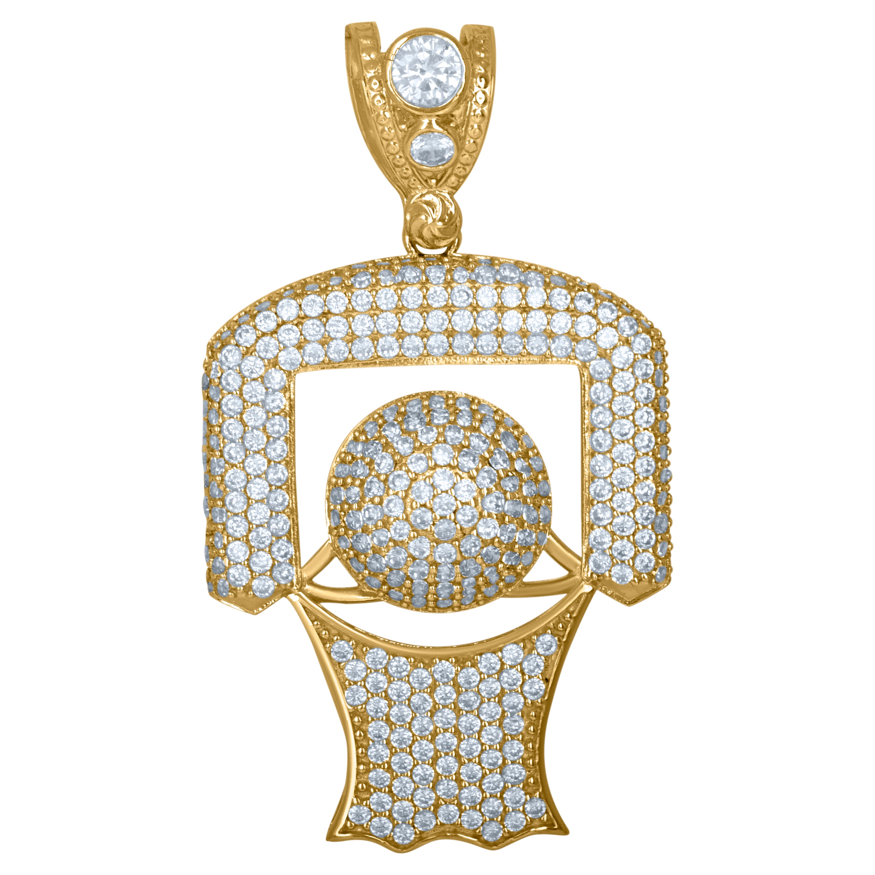 10kt Yellow Gold Mens Baguette Round Cubic-Zirconia Jesus Religious Charm Pendant