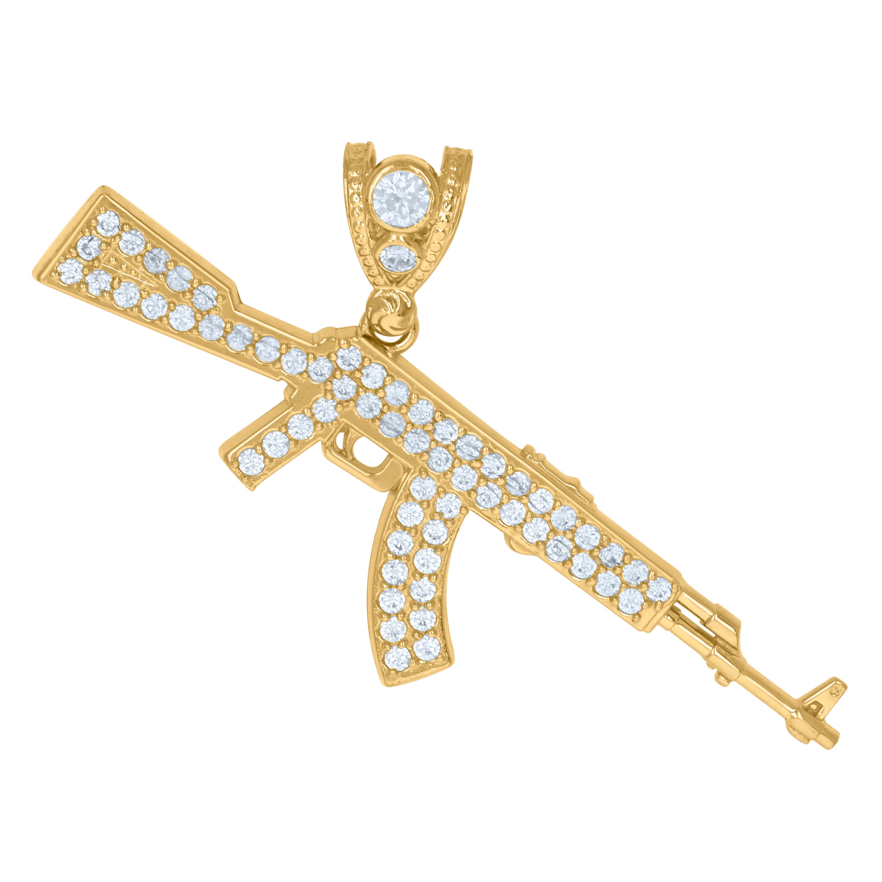 10kt Yellow Gold Mens Black White Cubic-Zirconia Teddy Bear Charm Pendant