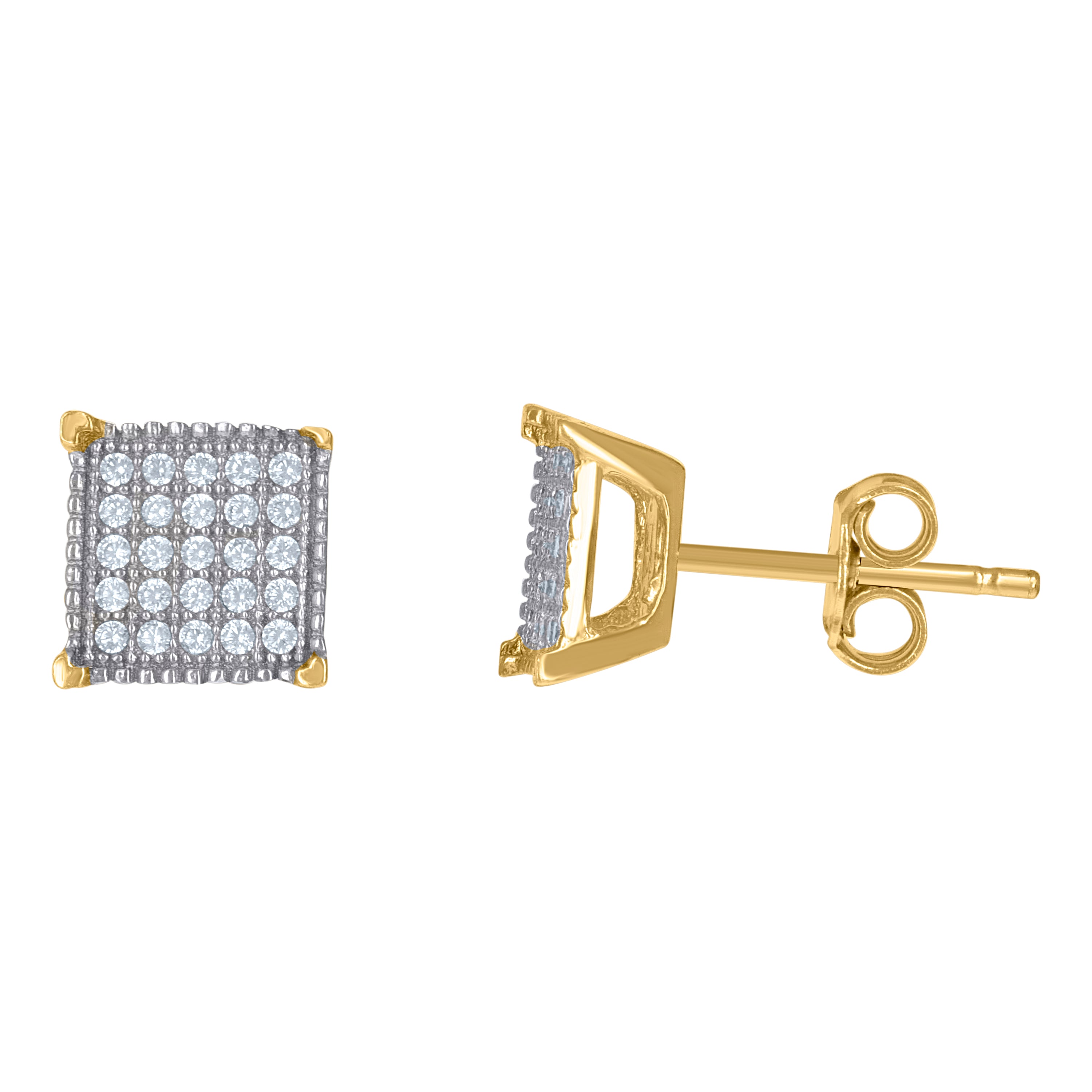 Elevate your elegance with these exquisite 10kt Two-Tone Gold Women's CZ Cubic Zirconia Square Stud Earrings. Crafted with a polished finish, these stunning earrings feature a pave setting of sparkling round white cubic zirconia. Weighing only 1.6 grams, they offer comfortable wear with a secure push-back closure. The 7.1MM height and width ensure a perfect touch of sophistication to any attire. Ideal for those who appreciate timeless beauty and modern design.