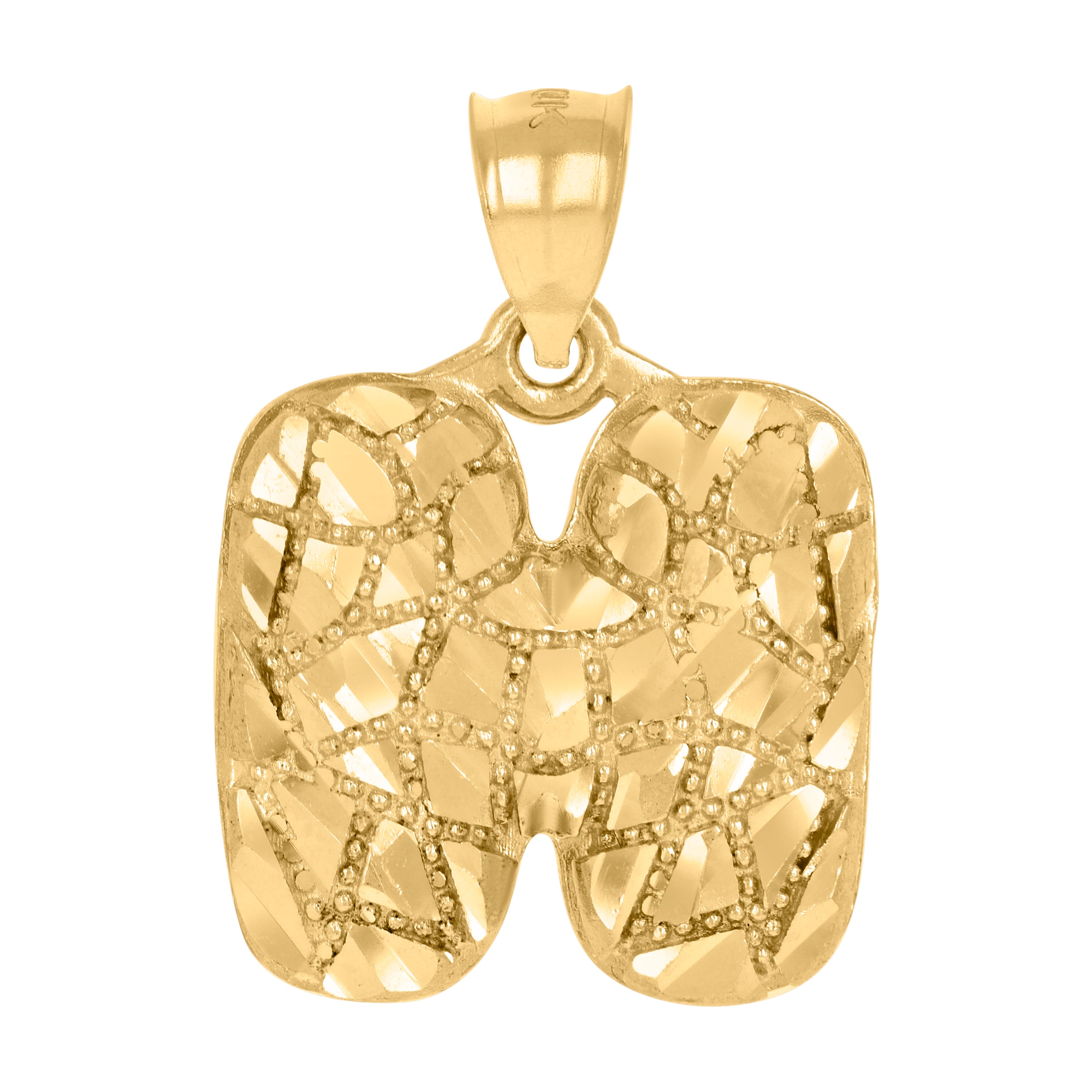 Embrace elegance with our 10kt Yellow Gold Unisex Initial 'H' Nugget Charm Pendant. Weighing 3.4 grams, this exquisite piece features a captivating diamond-cut finish, enhancing its gleam and sophistication. Designed with a single bail closure, it measures 16.2MM in height and 22.9MM in width, offering a bold yet refined look. Perfect for personalizing your style, this pendant is a timeless addition to any jewelry collection.
