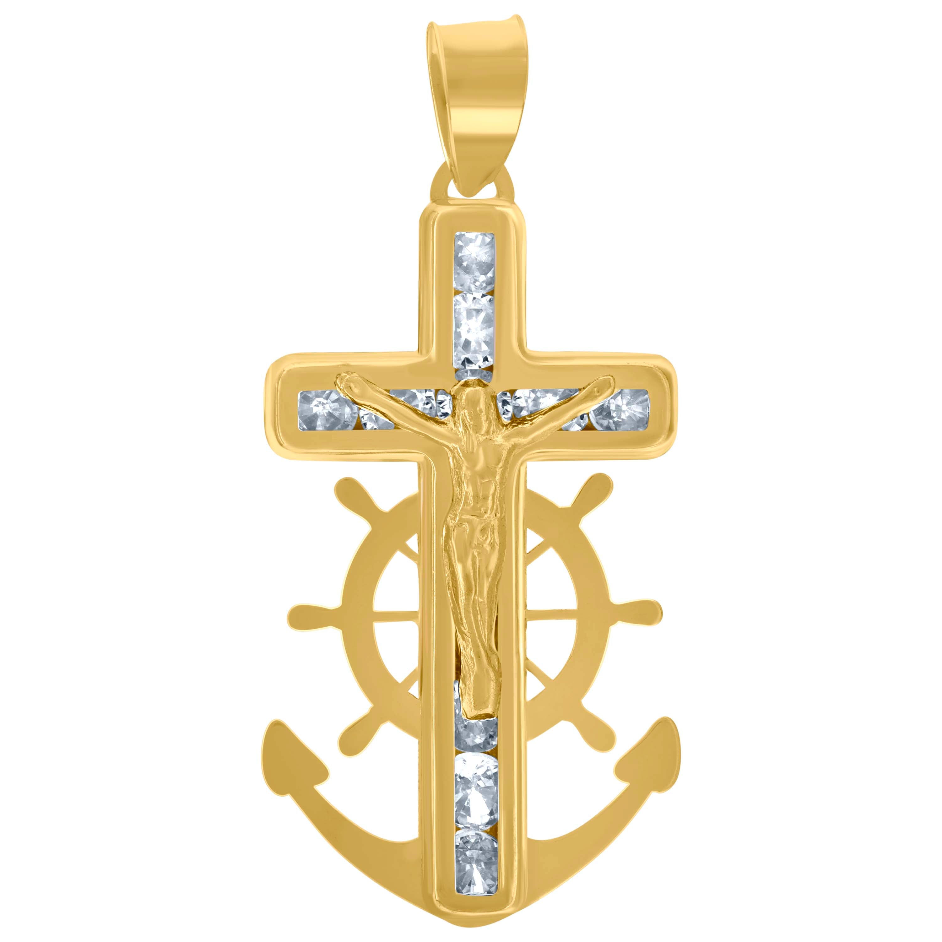 Introducing our exquisite 10kt Yellow Gold Unisex Cubic-Zirconia Crucifix Anchor Religious Charm Pendant from SB Jewelers – a stunning piece that flawlessly combines elegance and meaning. Crafted with precision, this pendant boasts a polished finish that radiates a captivating brilliance, making it an ideal accessory for both men and women.