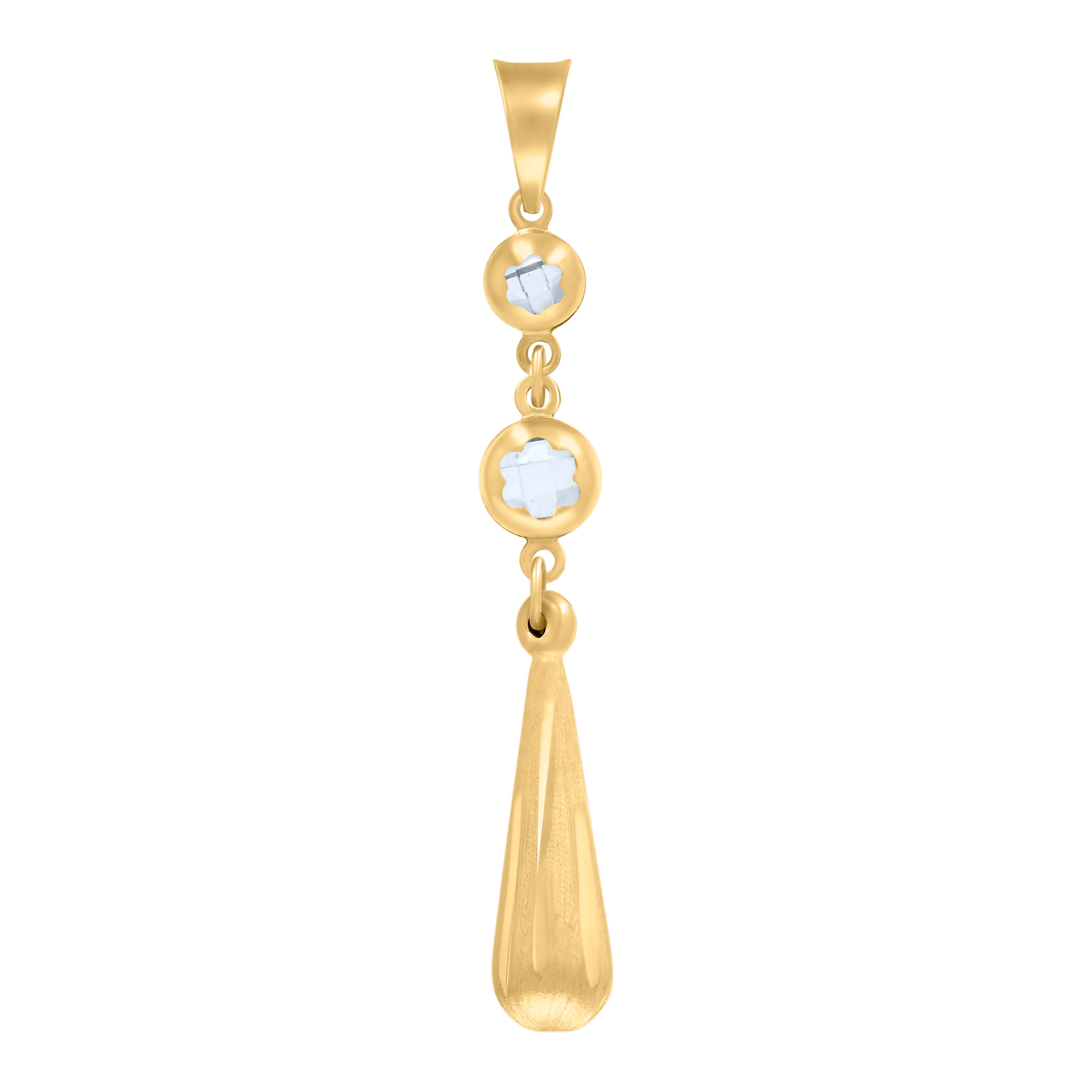 Elevate your style with our exquisite 10Kt Gold Turkish Pendant, a masterpiece crafted for the discerning woman. This stunning pendant, made from pure 10kt real yellow gold, features a dazzling cubic-zirconia drop that captures the light with every move. Weighing just 1.2 grams, it's light yet luxurious, with a diamond-cut finish that adds a sophisticated sparkle. The pendant's elegant design includes a secure single bail, making it easy to pair with any chain. With a height of 45.5mm and a slender width of 5.6mm, this pendant is the perfect blend of grace and glamour. The bezel-set round white cubic-zirconia adds a classic touch, making it an ideal accessory for any occasion. Add this timeless piece to your collection and let its beauty shine through your ensemble.