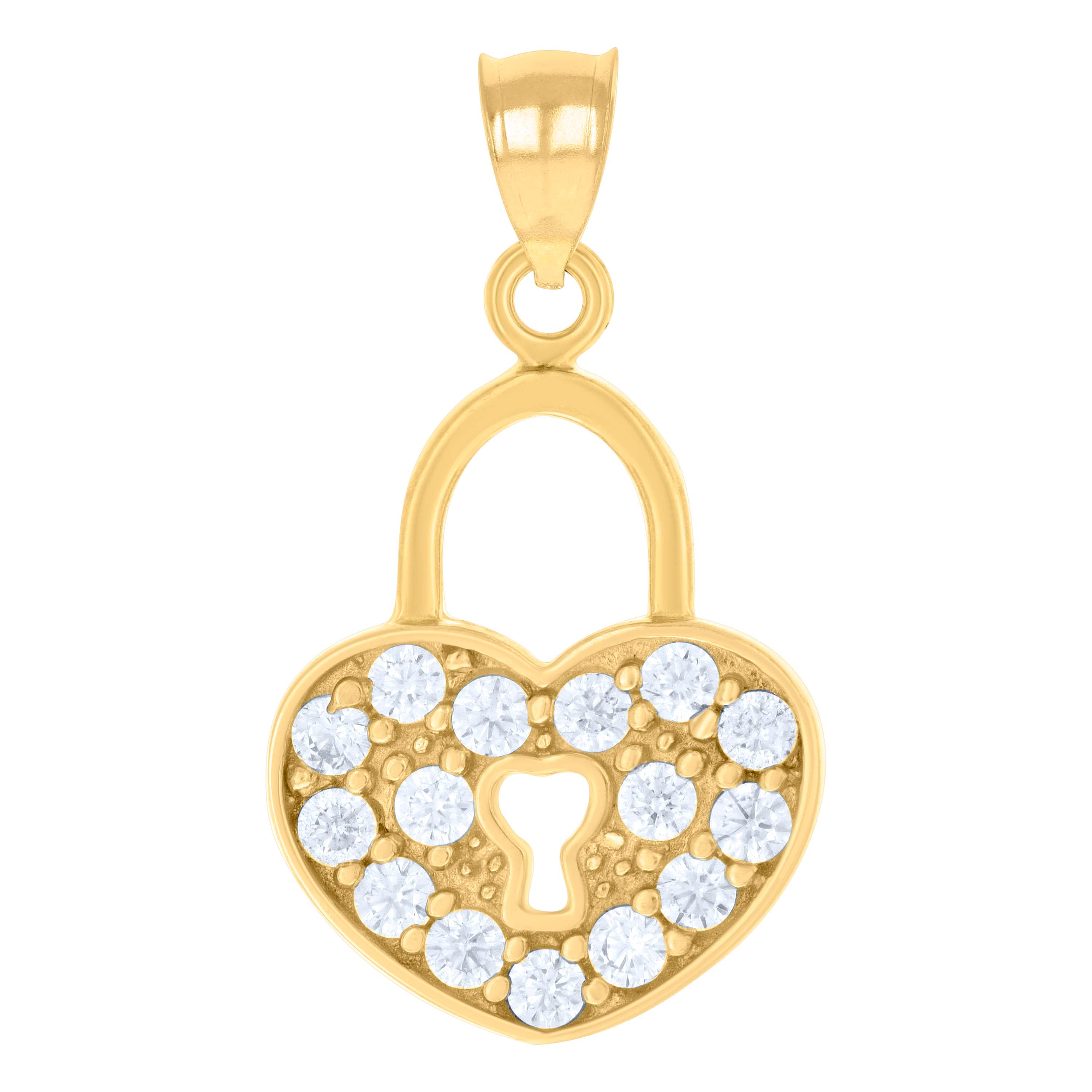 10kt Yellow Gold Womens Cubic Zirconia Cubic-Zirconia Love Heart Lock Charm Pendant