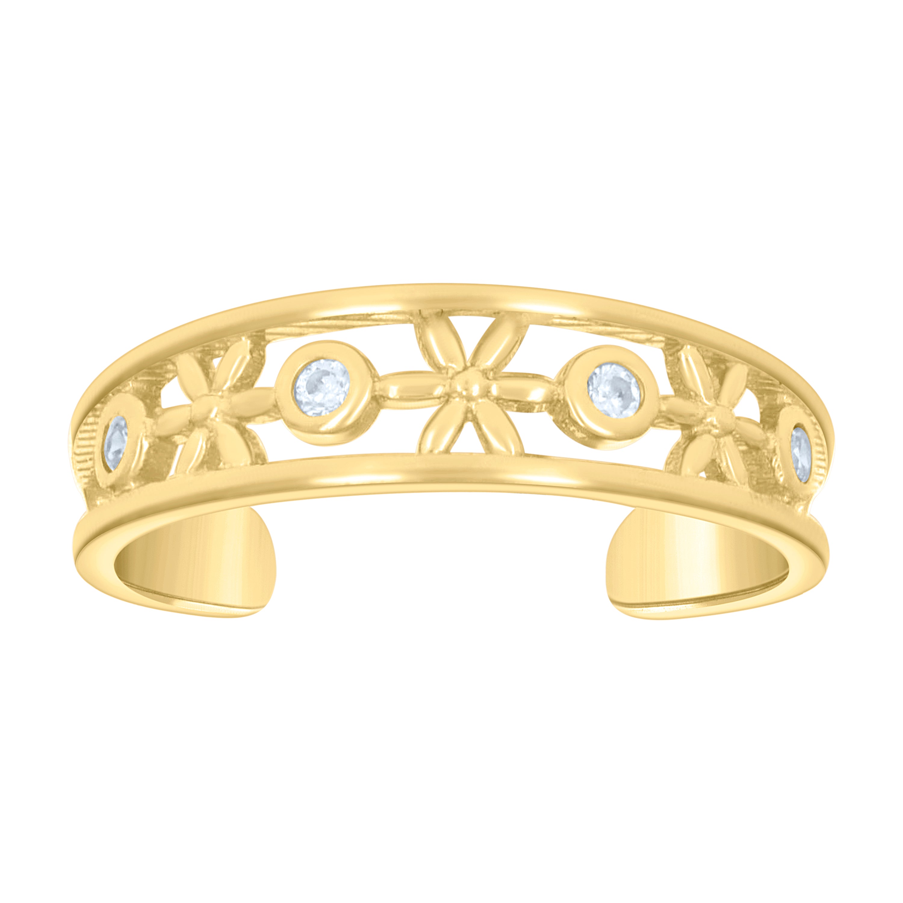 10kt Yellow Gold Womens Cubic-Zirconia Floral Fashion Toe Ring