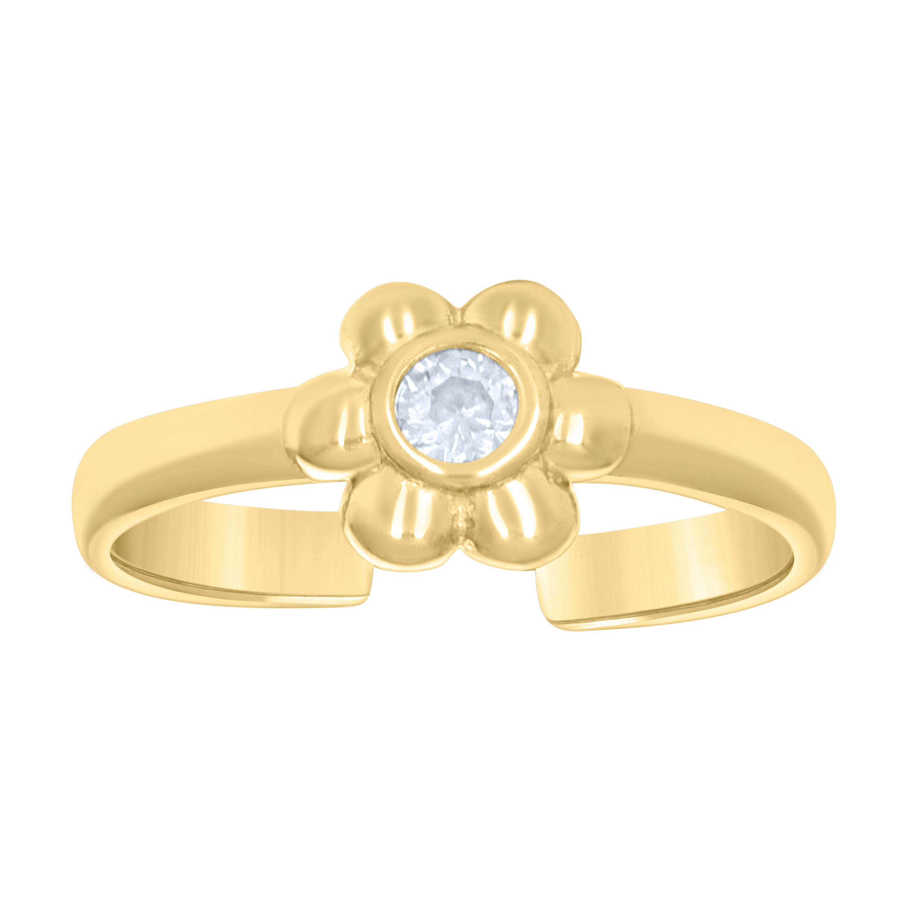 10kt Yellow Gold Womens Cubic-Zirconia Flower Toe Ring