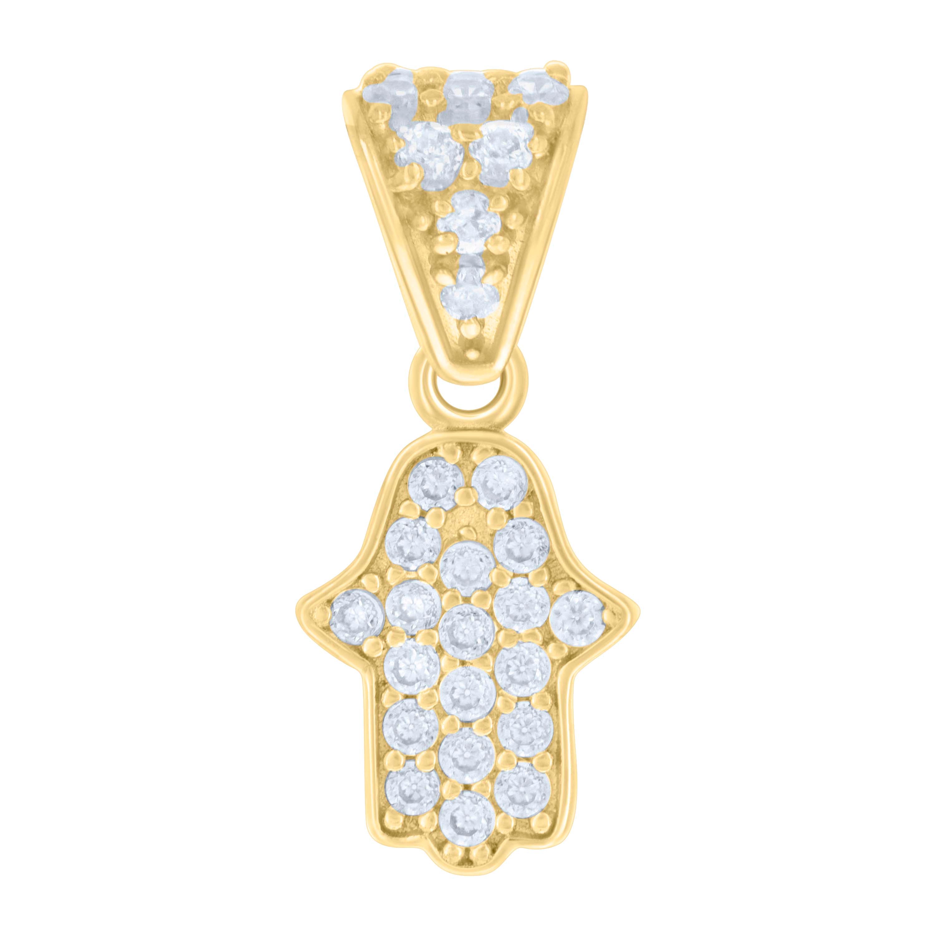 Introduce a touch of elegance and spirituality to your jewelry collection with the SB Jewelers 10kt Yellow Gold Women's Cubic-Zirconia Hamsa Symbol Religious Charm Pendant. Crafted with precision, this exquisite piece features a radiant 10k yellow gold setting that beautifully complements the brilliant round-shaped cubic zirconia, delivering a sparkling allure that catches the eye.