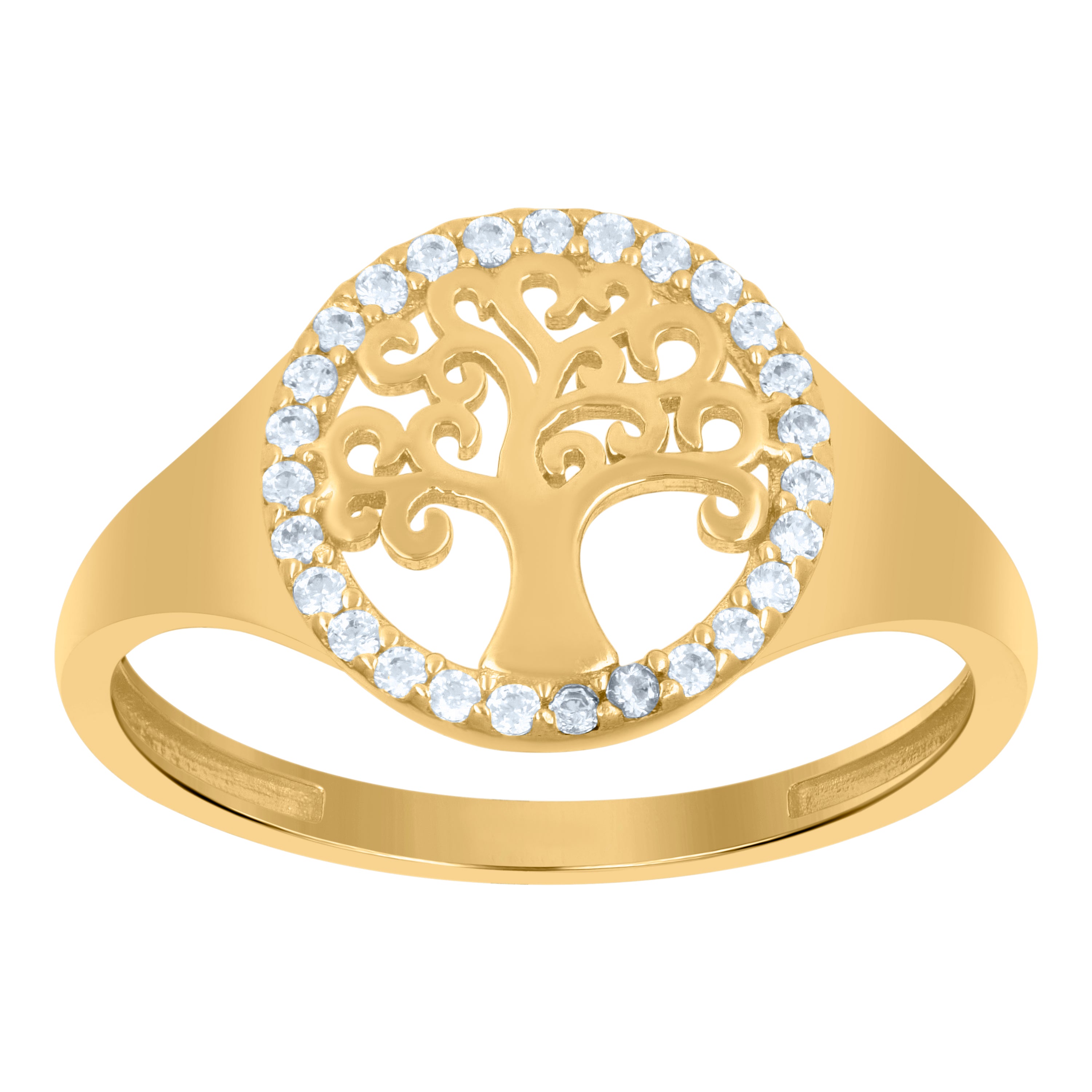 10kt Yellow Gold Womens Cubic-Zirconia Tree Of Life Good luck Ring