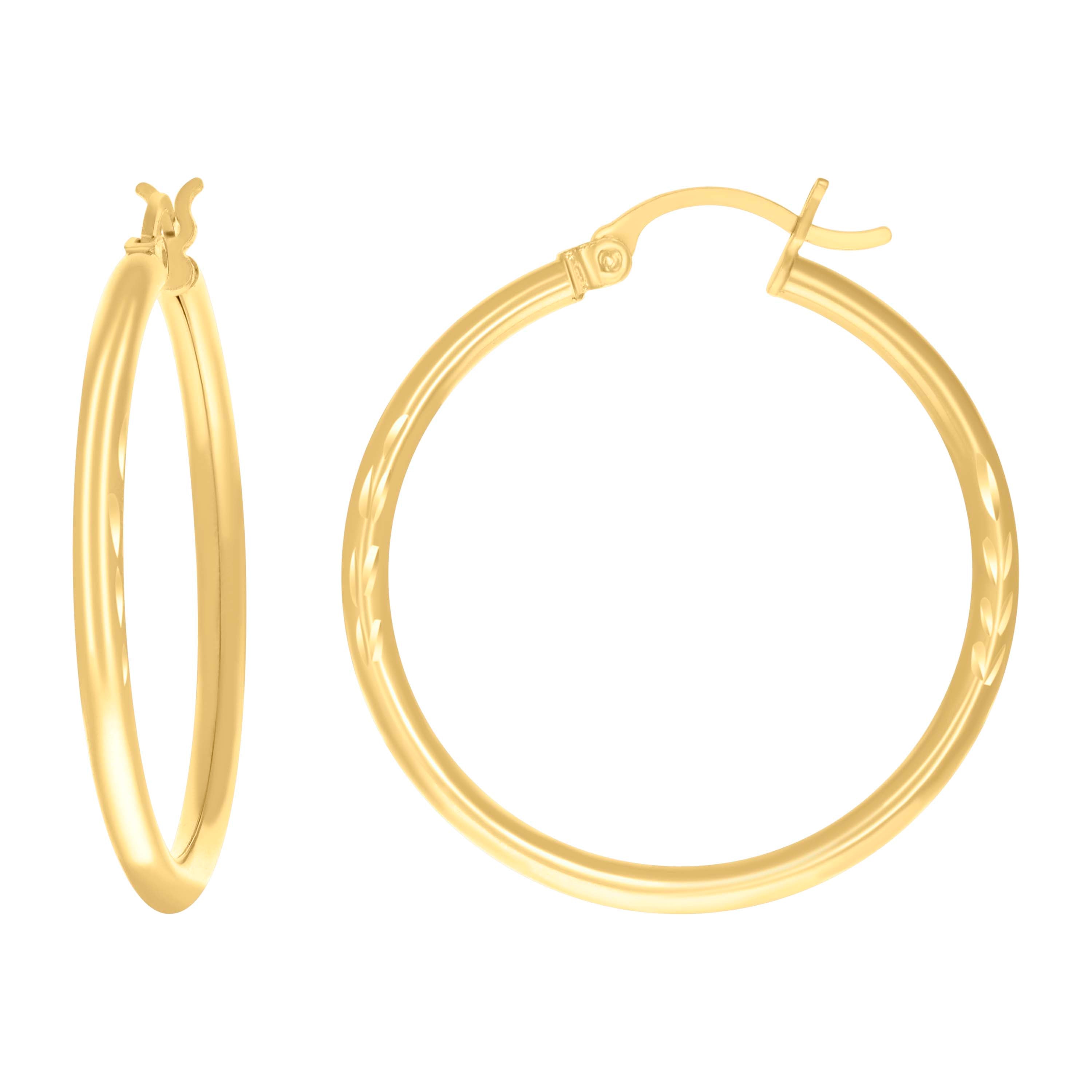 Enhance your elegance with these stunning 10Kt Gold Hoop Earrings, designed exclusively for women. Crafted from pure 10kt real yellow gold, these diamond-cut round tube hoops shimmer effortlessly, adding a touch of sophistication to any ensemble. Measuring a graceful 30mm in height and a delicate 2mm in thickness, they are lightweight at just 2.3 grams, ensuring comfort without compromising on style. The hinged back closure offers secure wear, making them perfect for everyday glam or special occasions. Elevate your jewelry collection with these timeless, lustrous hoops that promise to be a dazzling staple.
