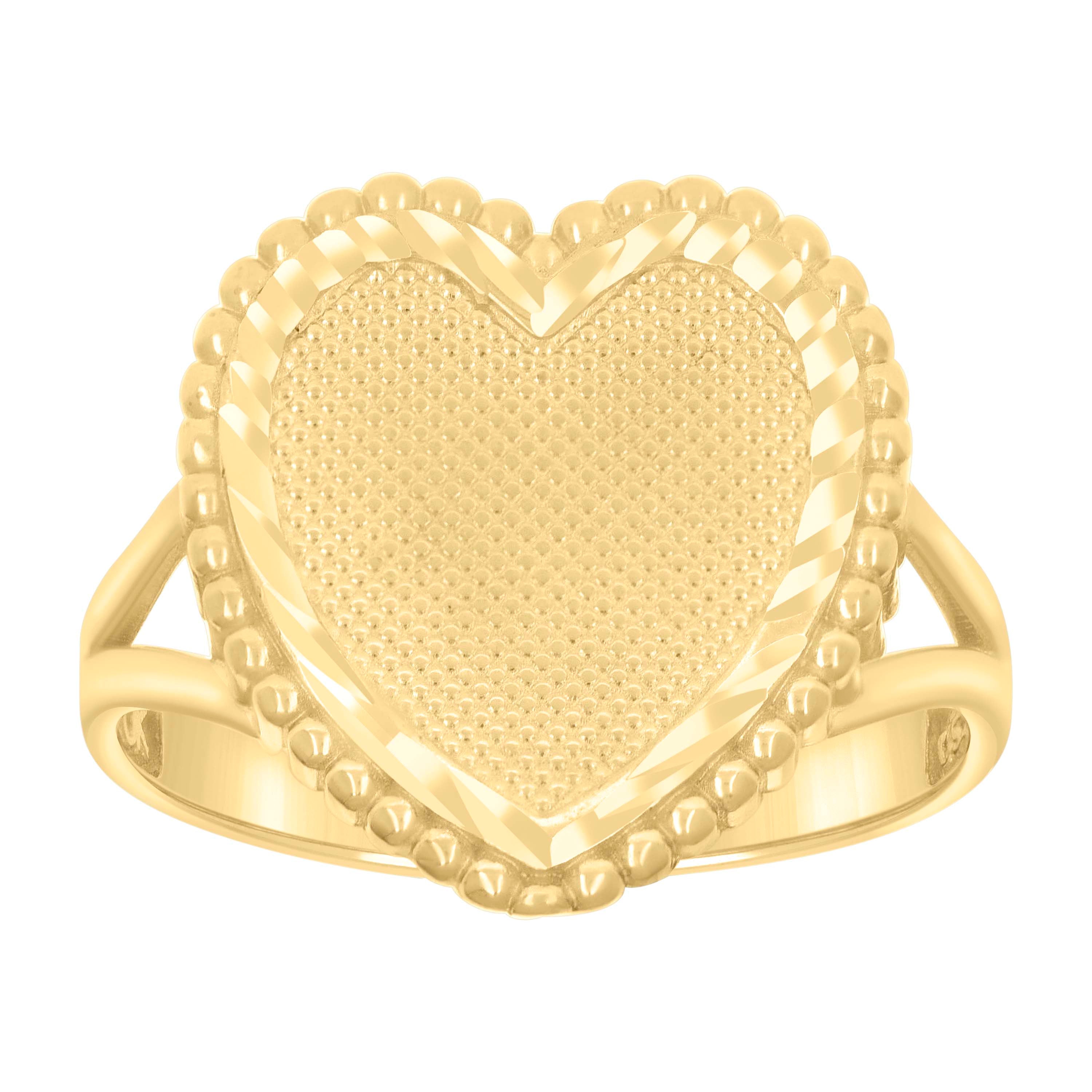 10kt Yellow Gold Womens Diamond-Cut Heart Ring