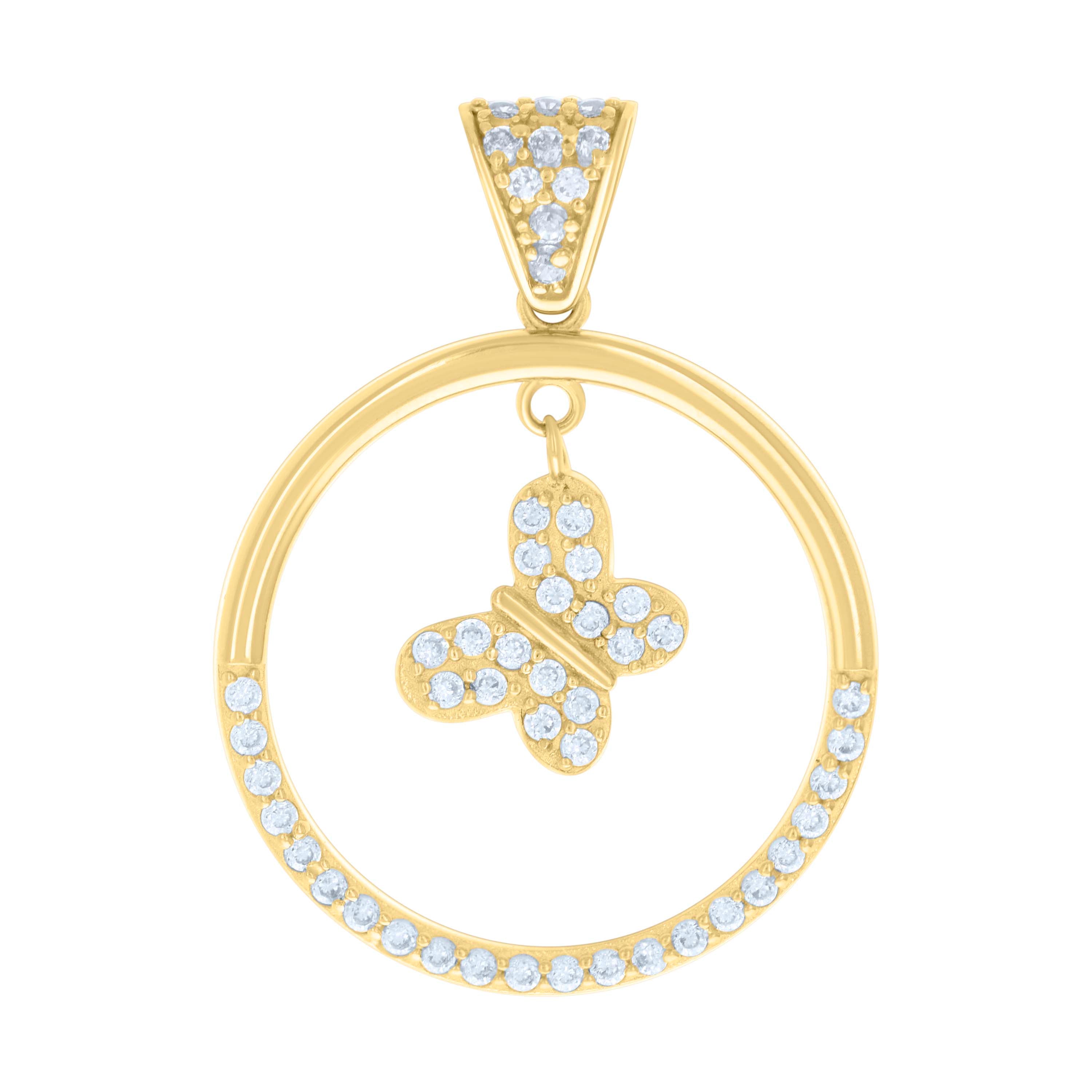 Adorn yourself with the exquisite 10Kt Gold CZ Pendant, a testament to elegance and grace. Crafted in pure 10kt yellow gold, this butterfly charm pendant dazzles with its polished finish and intricate design. The gleaming white round cubic zirconia stones are prong-set to perfection, ensuring a radiant sparkle that captures every eye. Measuring 30.6mm in height and 22.1mm in width, this lightweight 2-gram piece is tailored for women who appreciate refined beauty. The single bail closure provides easy wearability, making it a versatile addition to any jewelry collection. Embrace the allure of timeless fashion with this stunning pendant.