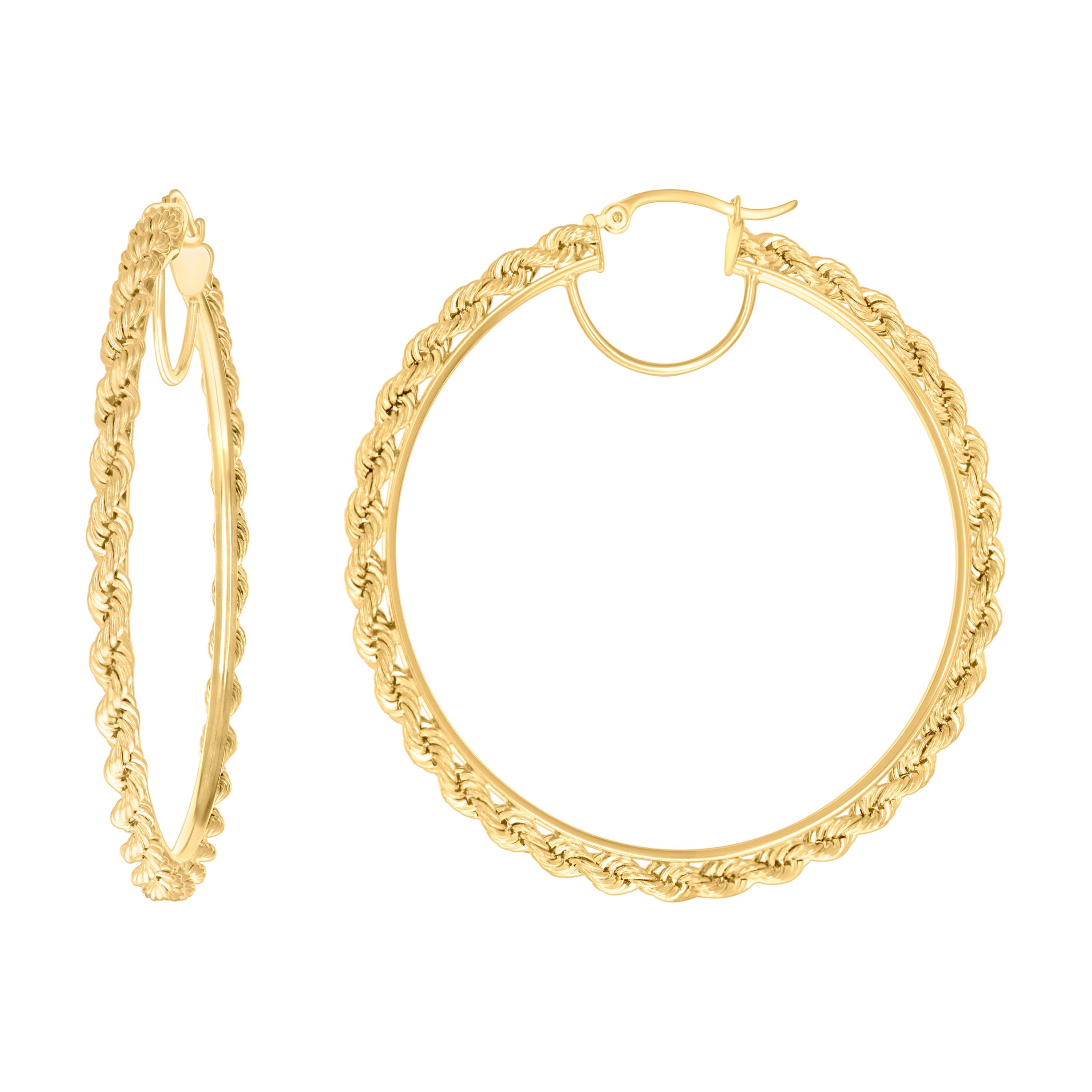 Elevate your elegance with these exquisite 10kt Yellow Gold Women's Fancy Twisted Rope Hoop Earrings. Meticulously crafted to perfection, these hoops feature a unique twisted rope design that gracefully captures the light, adding a touch of sophistication to any ensemble. With a substantial height of 57 mm and a sleek width of 3 mm, these earrings offer a perfect balance of boldness and subtlety. Weighing in at a comfortable 5.5 grams, they provide the ideal blend of durability and lightweight wearability. The hinged back closure ensures a secure fit, making these earrings as practical as they are beautiful. Designed without CZ, they exude a timeless charm that speaks of understated luxury. Whether you're dressing up for a special occasion or adding a touch of glamour to your everyday look, these elegant hoops are a versatile addition to any jewelry collection.