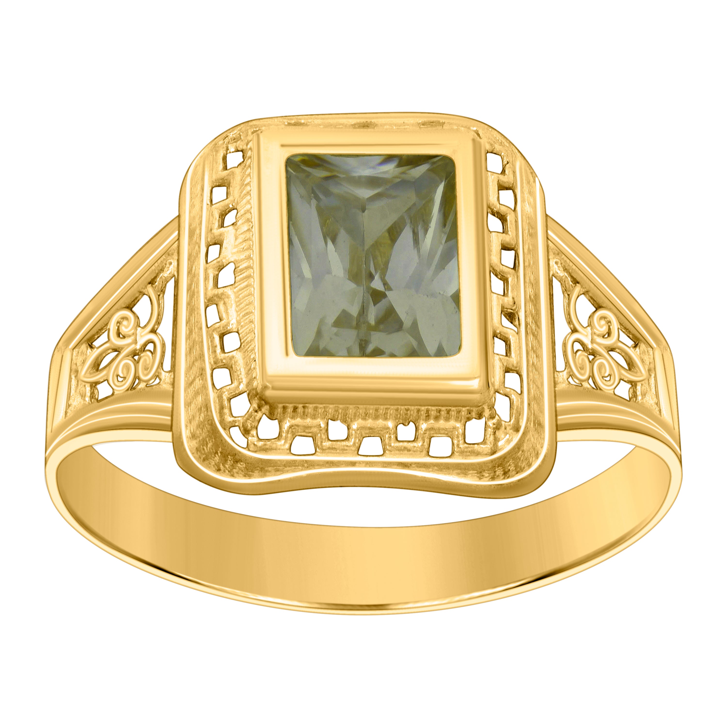 10kt Yellow Gold Womens Green Emerald-cut Cubic-Zirconia August Birthstone Ring