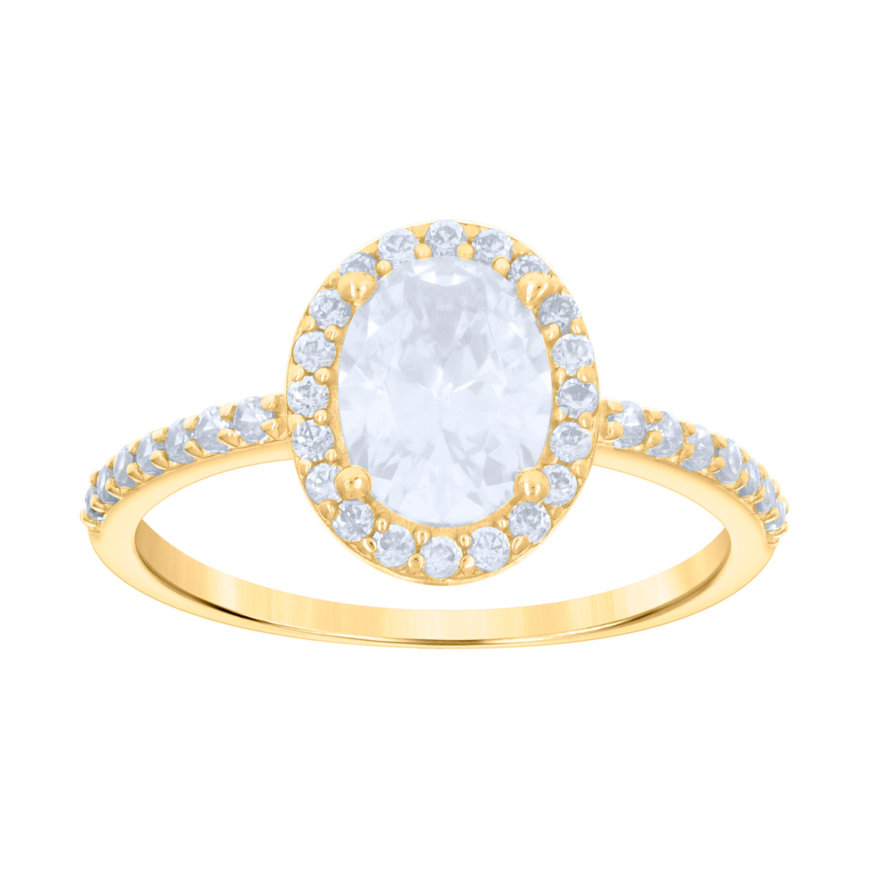 Embrace timeless elegance with this stunning 10kt Yellow Gold Women's Engagement Ring, a true testament to love and commitment. At a lightweight 1.7 grams, this exquisite piece is designed with a perfect blend of classic charm and modern sophistication. Its polished finish adds a radiant glow, while the prong setting securely cradles the dazzling cubic zirconia stones. The central round-cut CZ stone captivates with its pure, white brilliance, beautifully complemented by oval-shaped CZ accents that enhance the ring’s allure. Measuring 10.4 mm in both height and width, this ring is a harmonious balance of proportion and elegance, making it an ideal symbol of your everlasting promise. Whether as a proposal or a cherished gift, this engagement ring is a timeless treasure that speaks of love, commitment, and style.