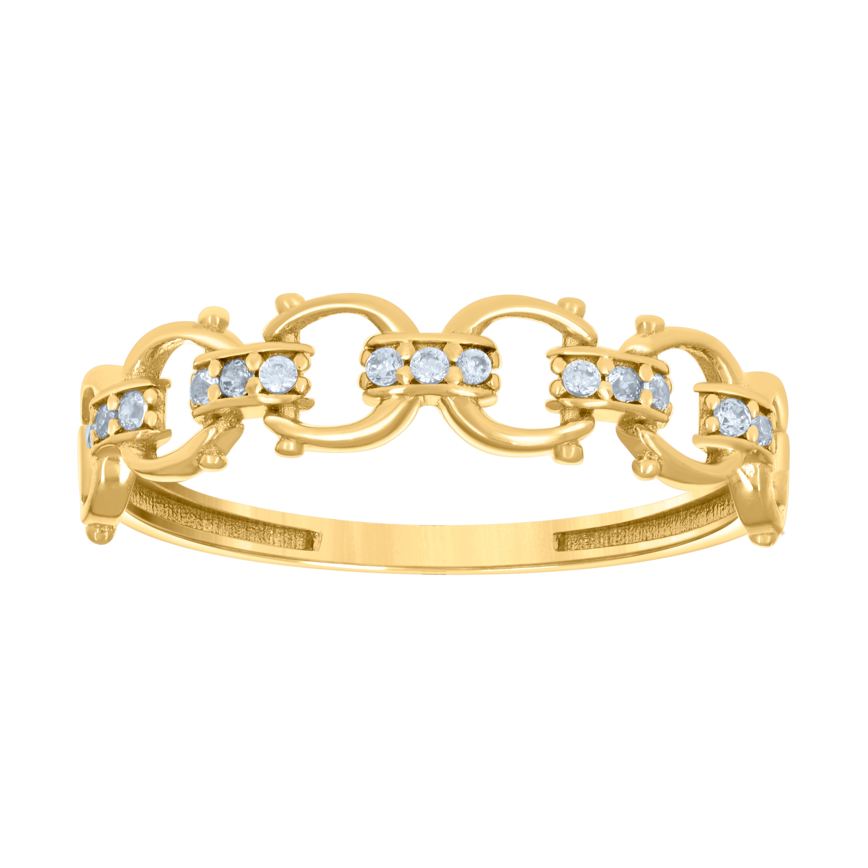 10kt Yellow Gold Womens Pink White Emerald Round Cubic-Zirconia Greek Key Sides Fashion Ring