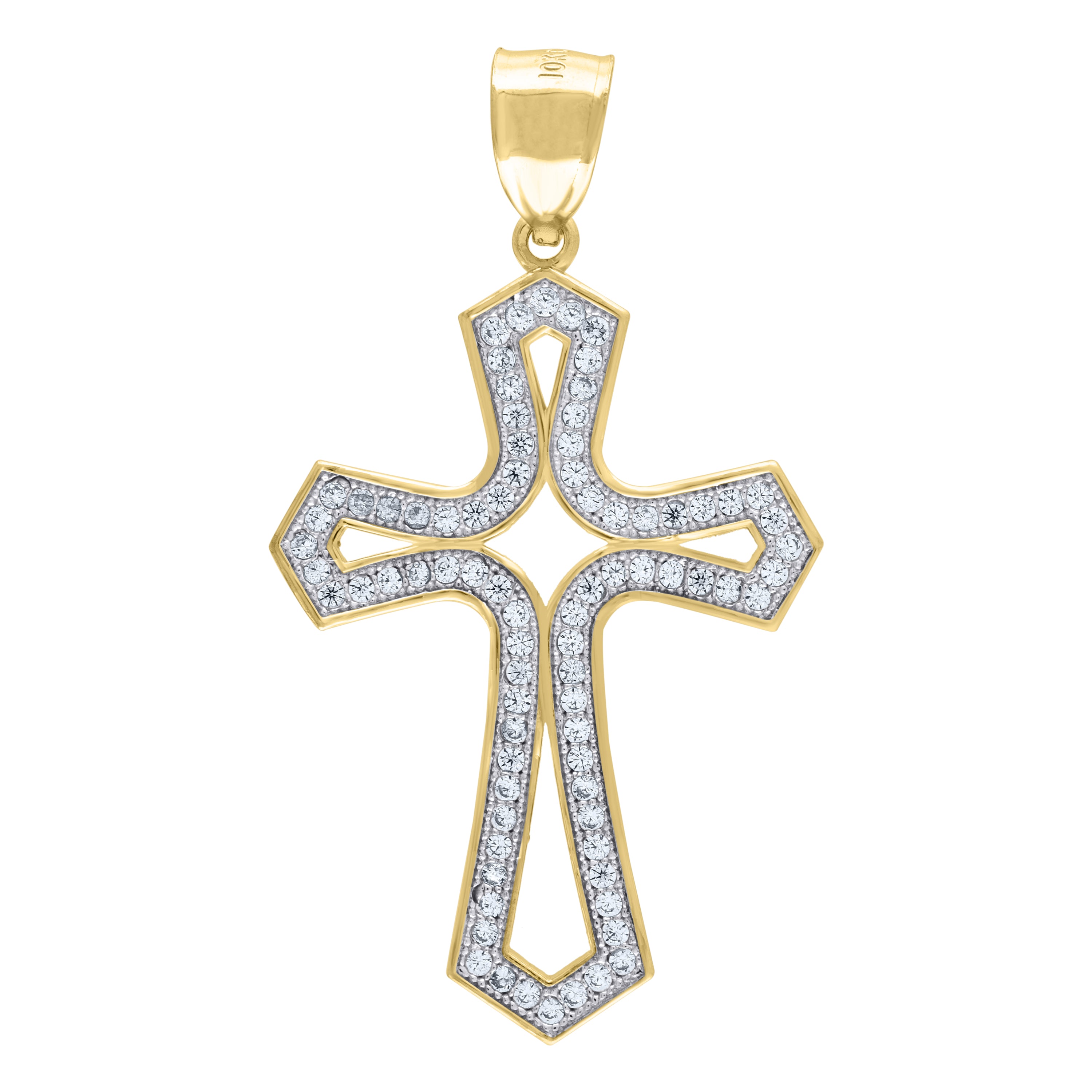 Elevate your style with this exquisite 10Kt Cz Charm, crafted from genuine 10kt two-tone gold. Designed for the modern man, this religious cross pendant features striking round white Cubic-Zirconia stones set in a secure prong setting that captures the light beautifully. With a polished finish, the pendant weighs a comfortable 3.4444 grams, offering both luxury and durability. The harmonious blend of yellow and white tones ensures it complements any attire. Featuring a single bail closure, it's ready to pair with your favorite chain. A timeless piece that speaks elegance, spirituality, and sophistication—perfect for every occasion.
